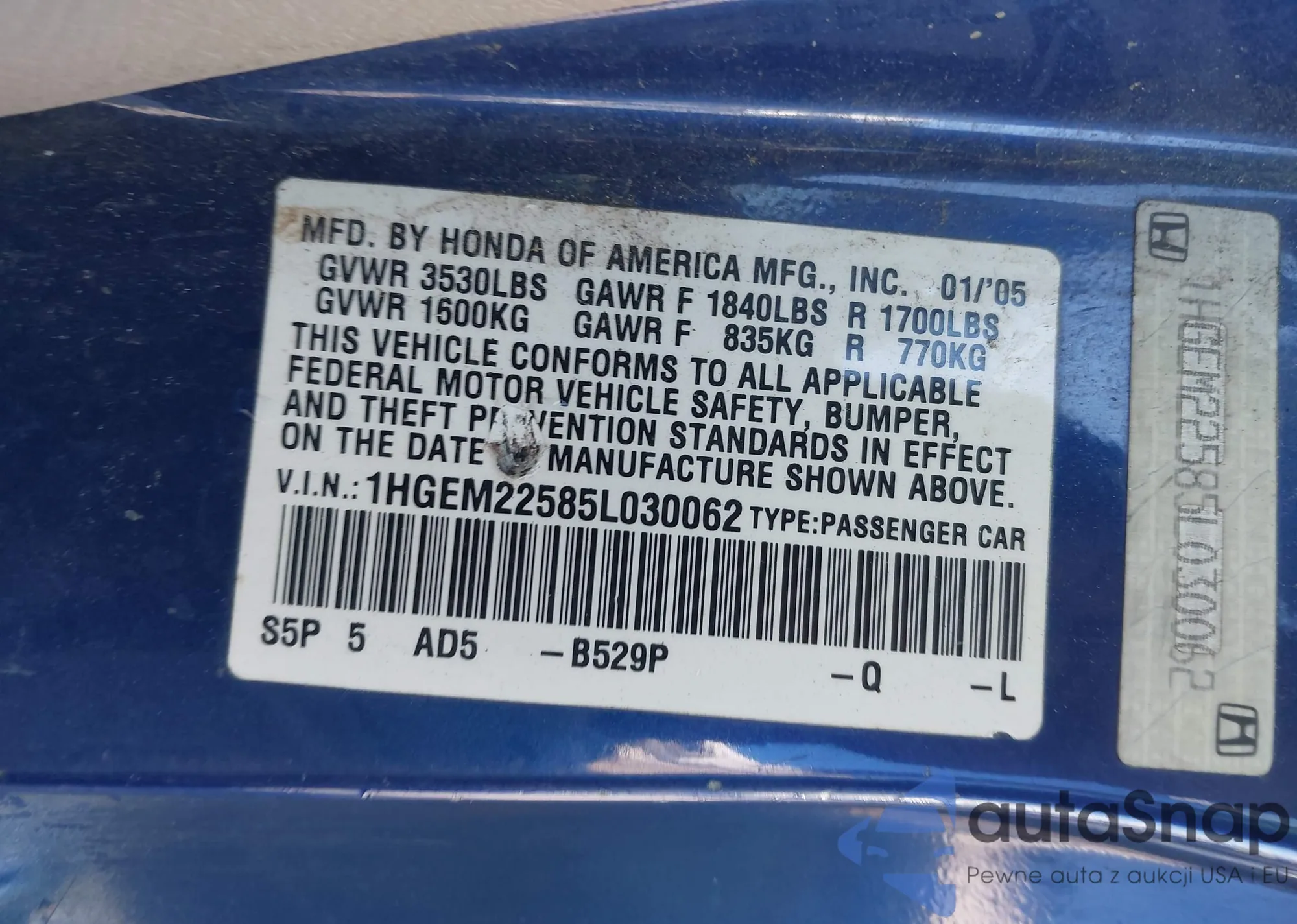 LOT: 42763876 VIN: 3FAFP31N75R102118