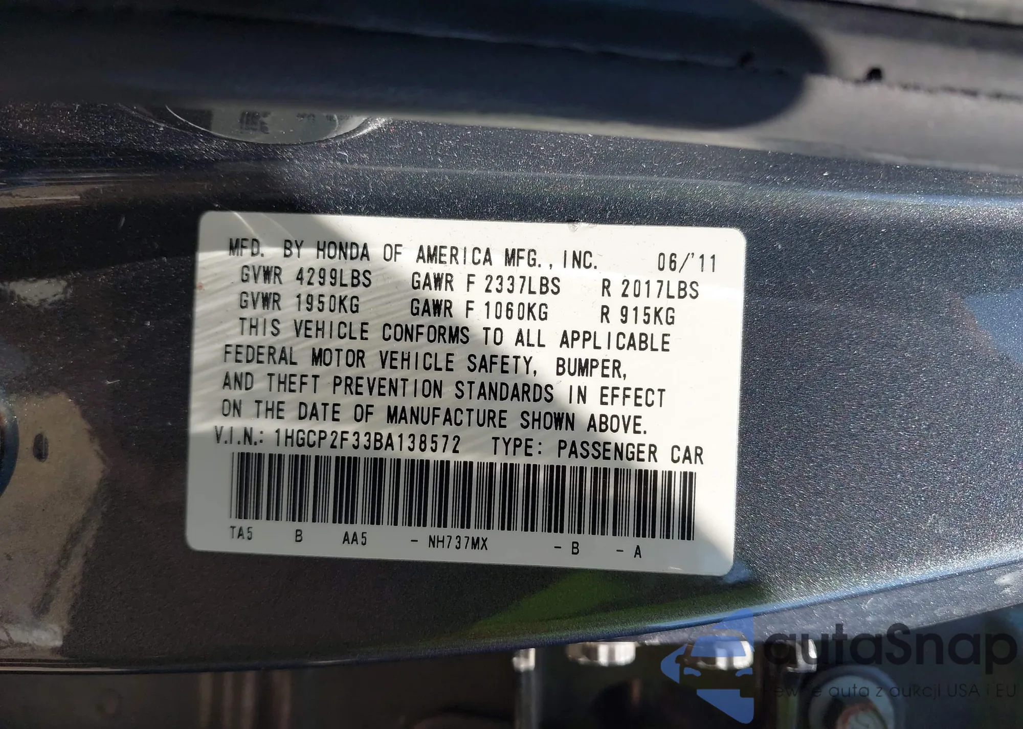 LOT: 42539979 VIN: 5TFJU4GN7BX001027