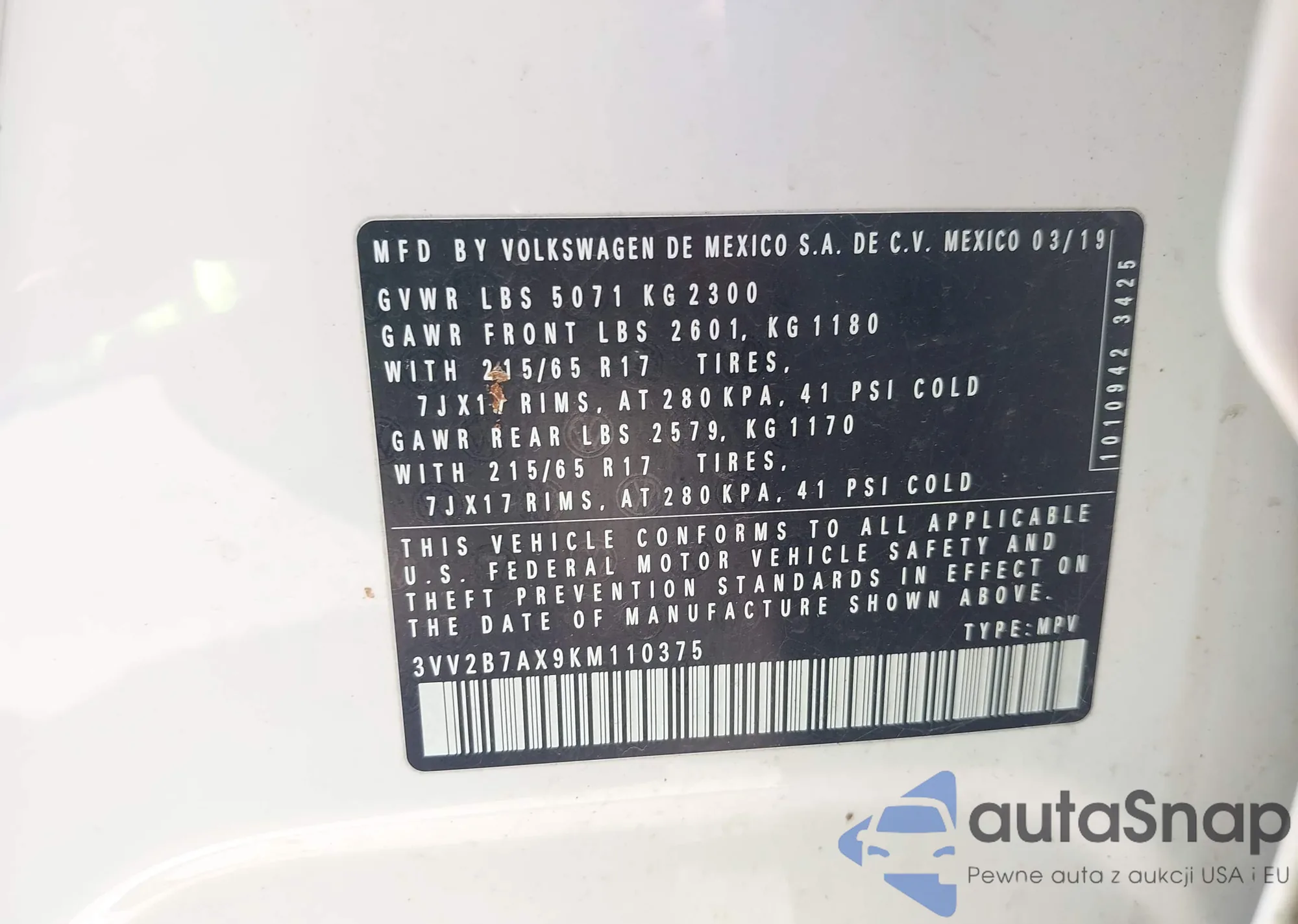 • VIN 3VW7M7BU6RM085915