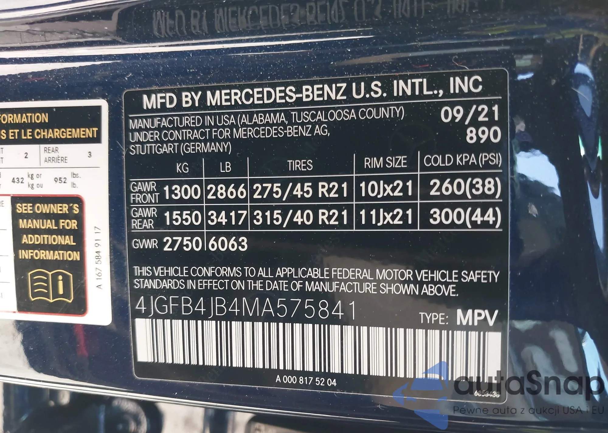 • VIN 4JGFB4JB4MA575841