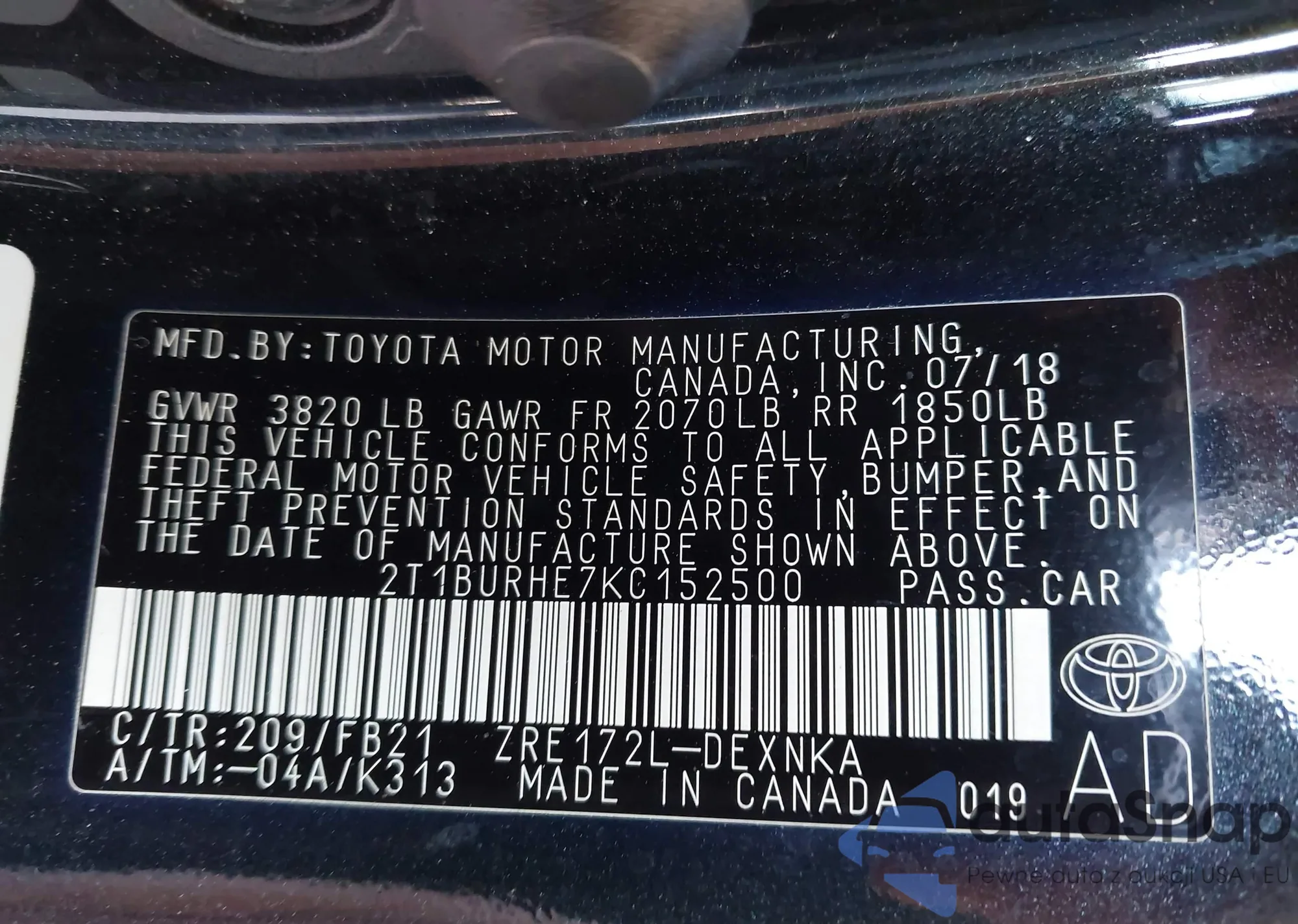 LOT: 42589642 VIN: 2T1BURHE7KC152500