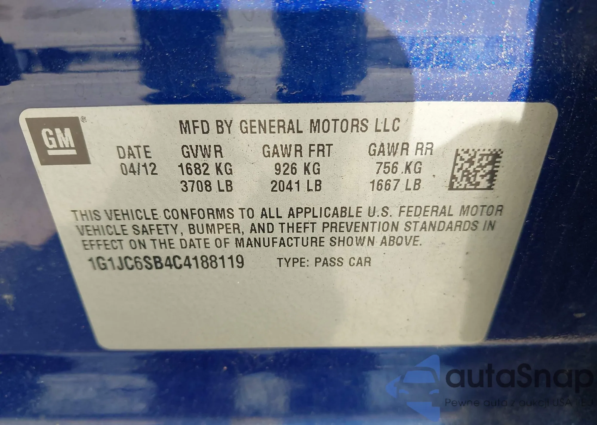 • VIN 1G1JC6SB4C4188119