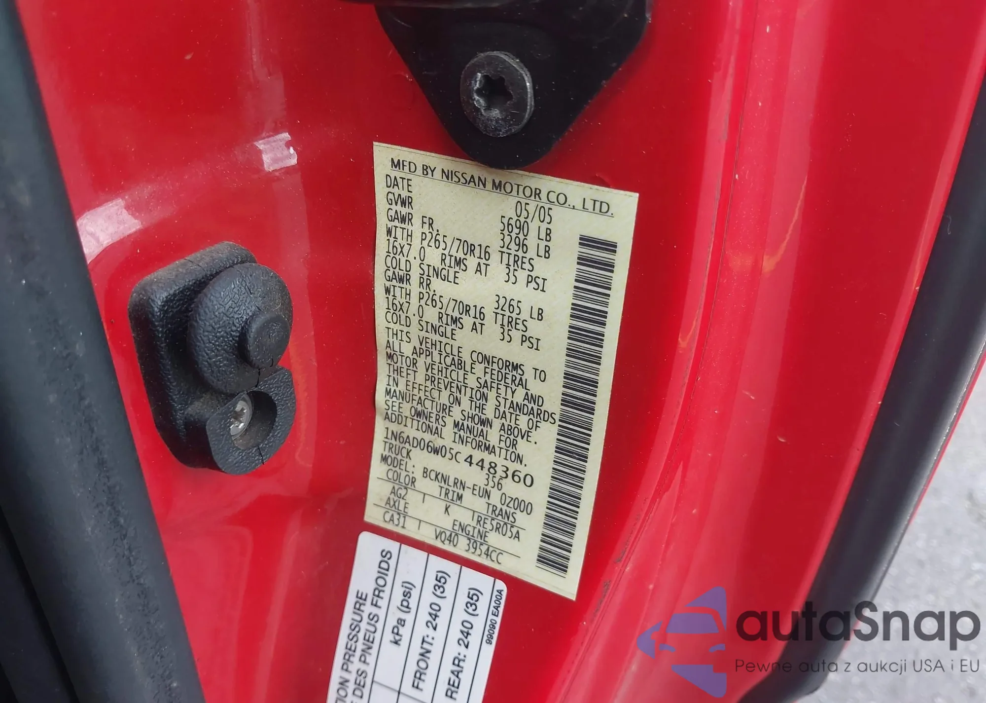• VIN 1N6AD06W05C448360