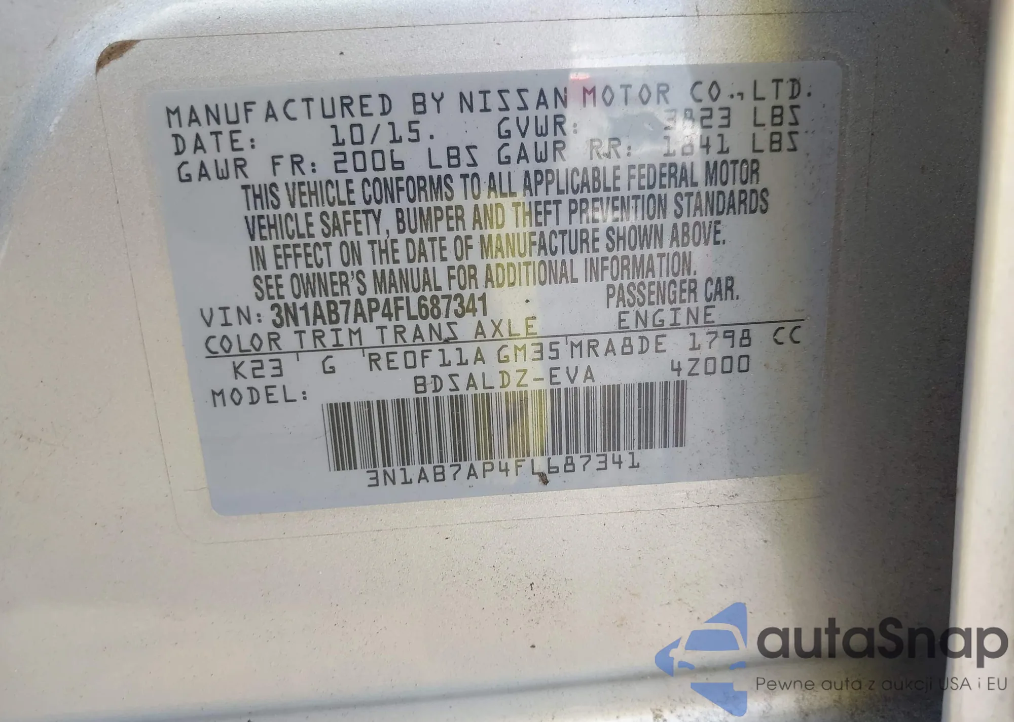 • VIN 3N1AB7AP4FL687341