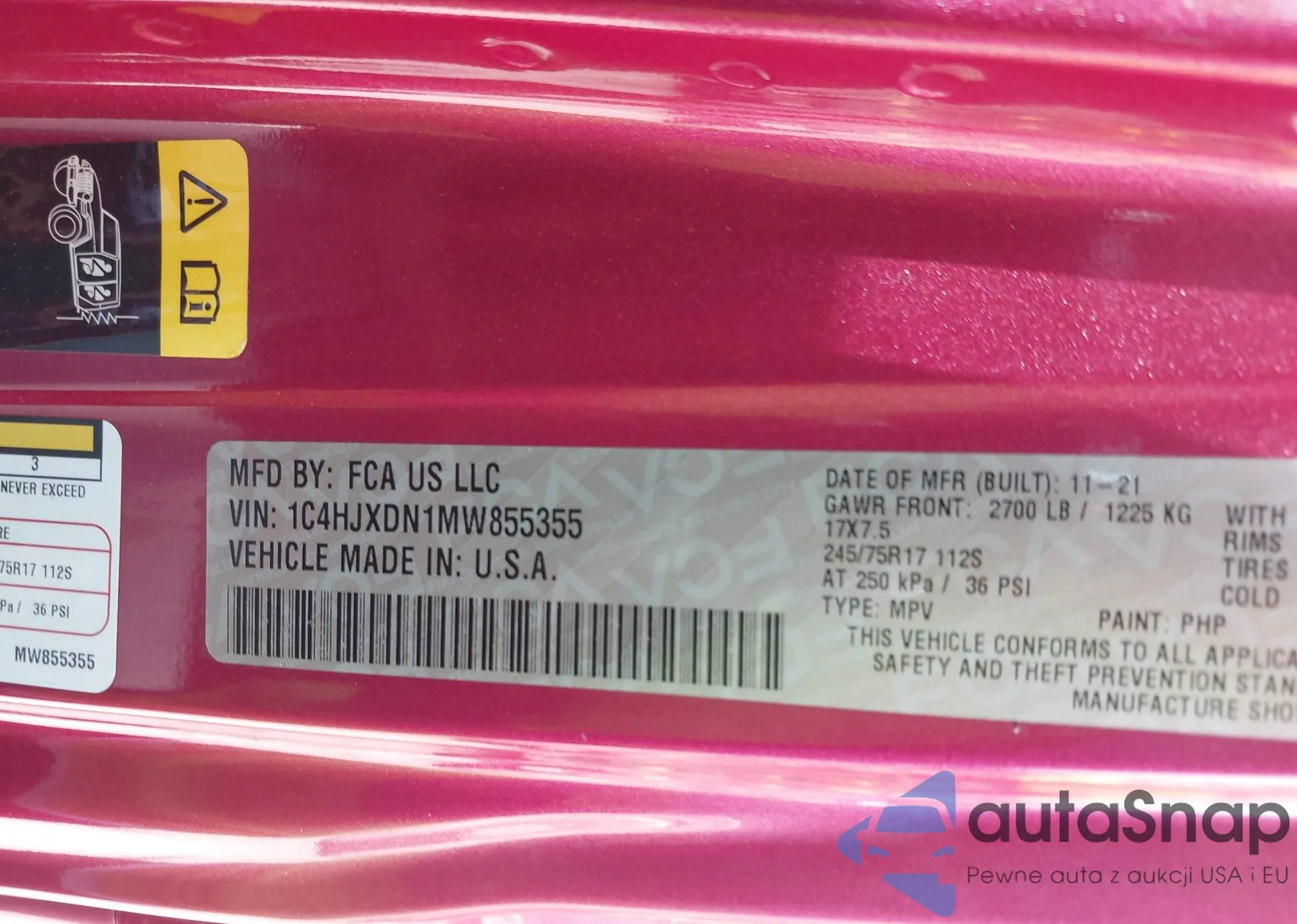 • VIN 1C4HJXDN1MW855355