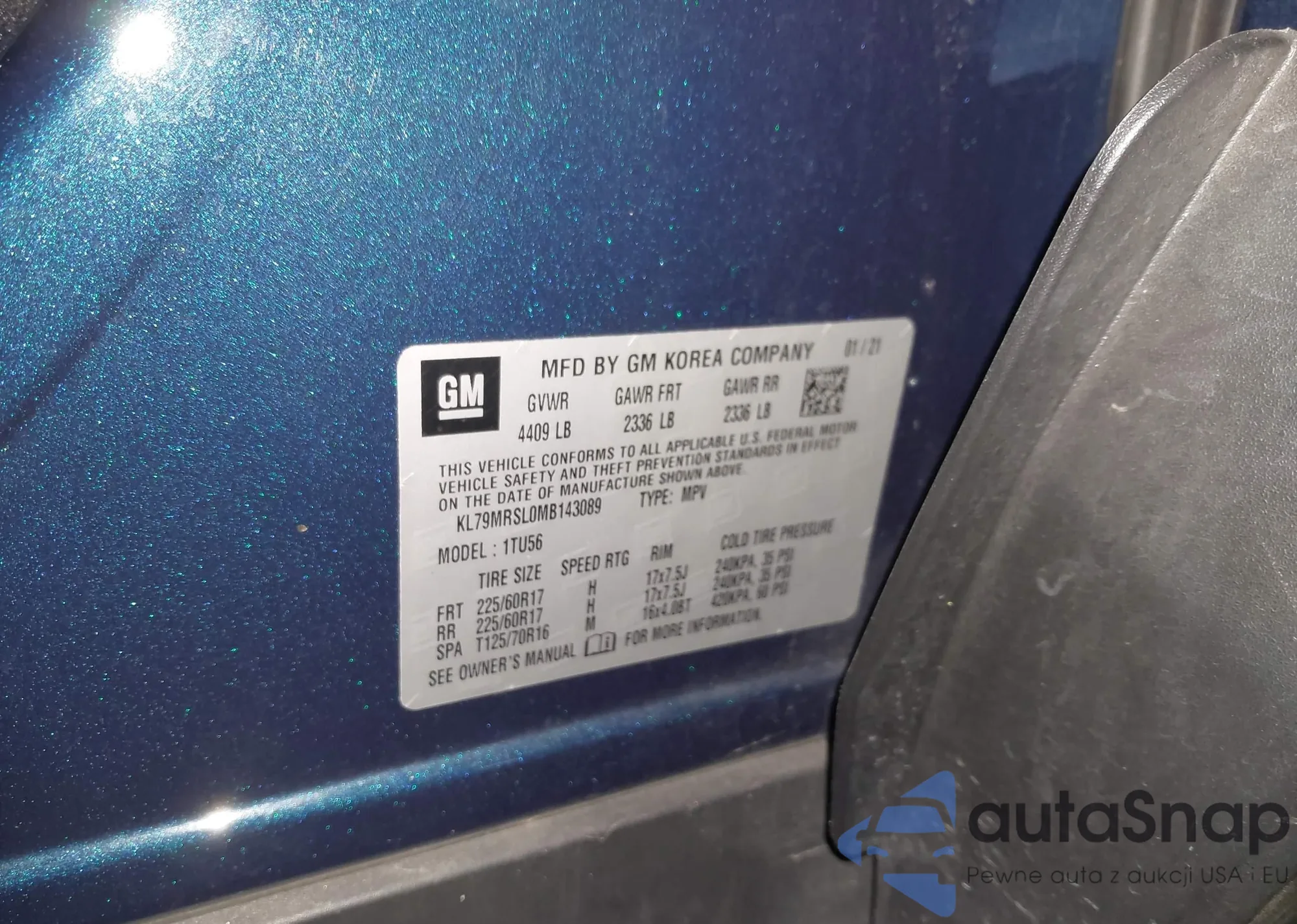 • VIN KL79MRSL0MB143089