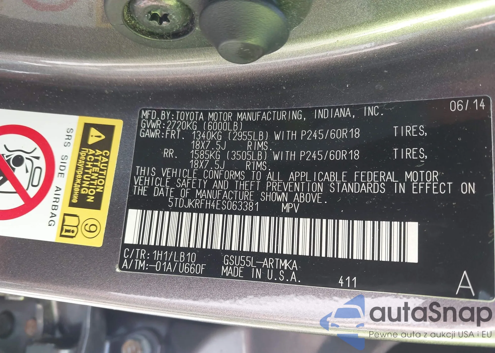 • VIN 5TDJKRFH4ES063381