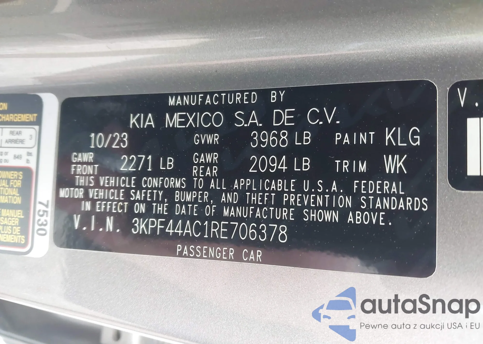 • VIN 3KPF44AC1RE706378