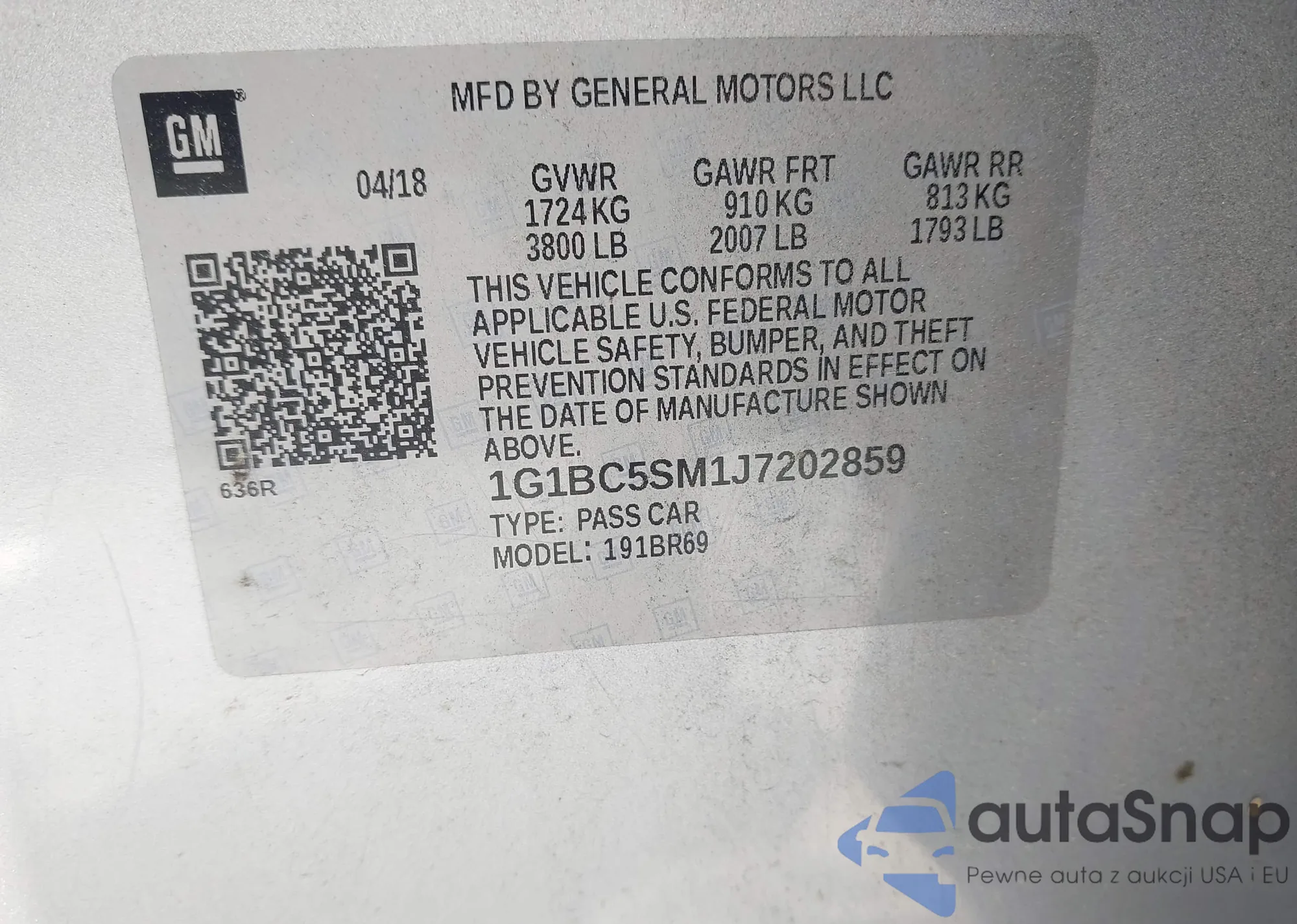LOT: 42682718 VIN: 1G1BC5SM1J7202859