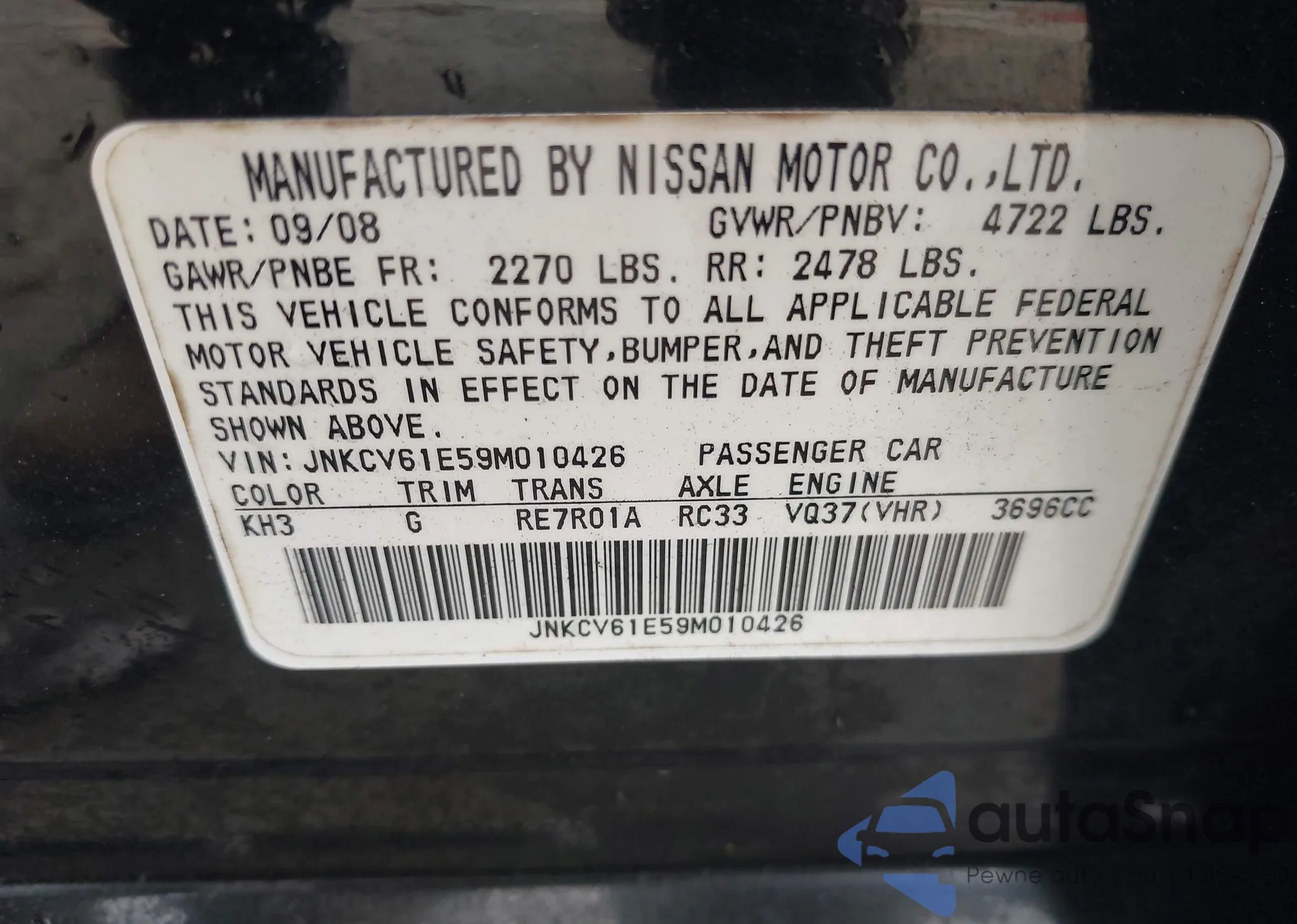 LOT: 42445958 VIN: 4T1BK36B75U027012