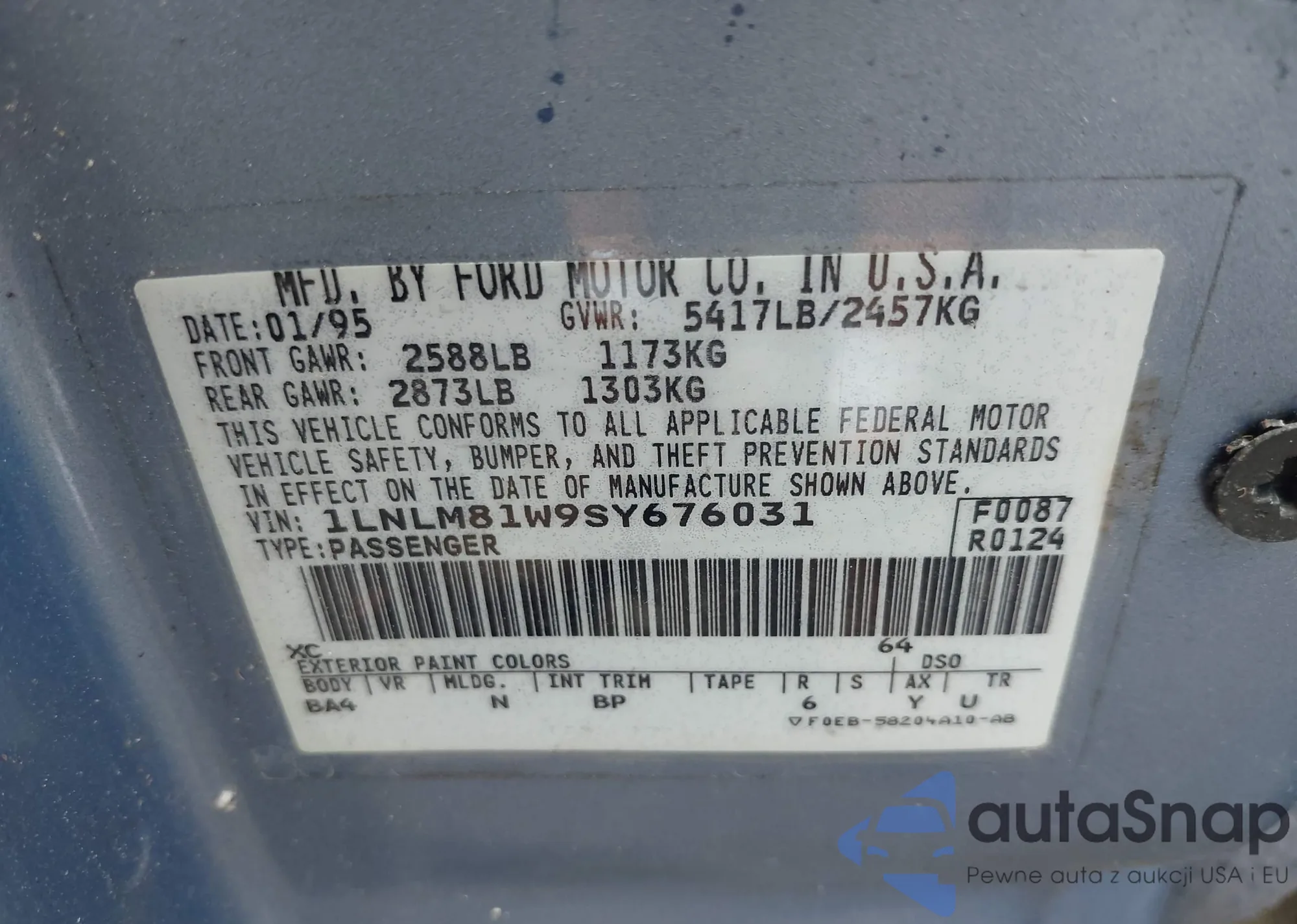 LOT: 42489372 VIN: 1J4FY19P9RP414286