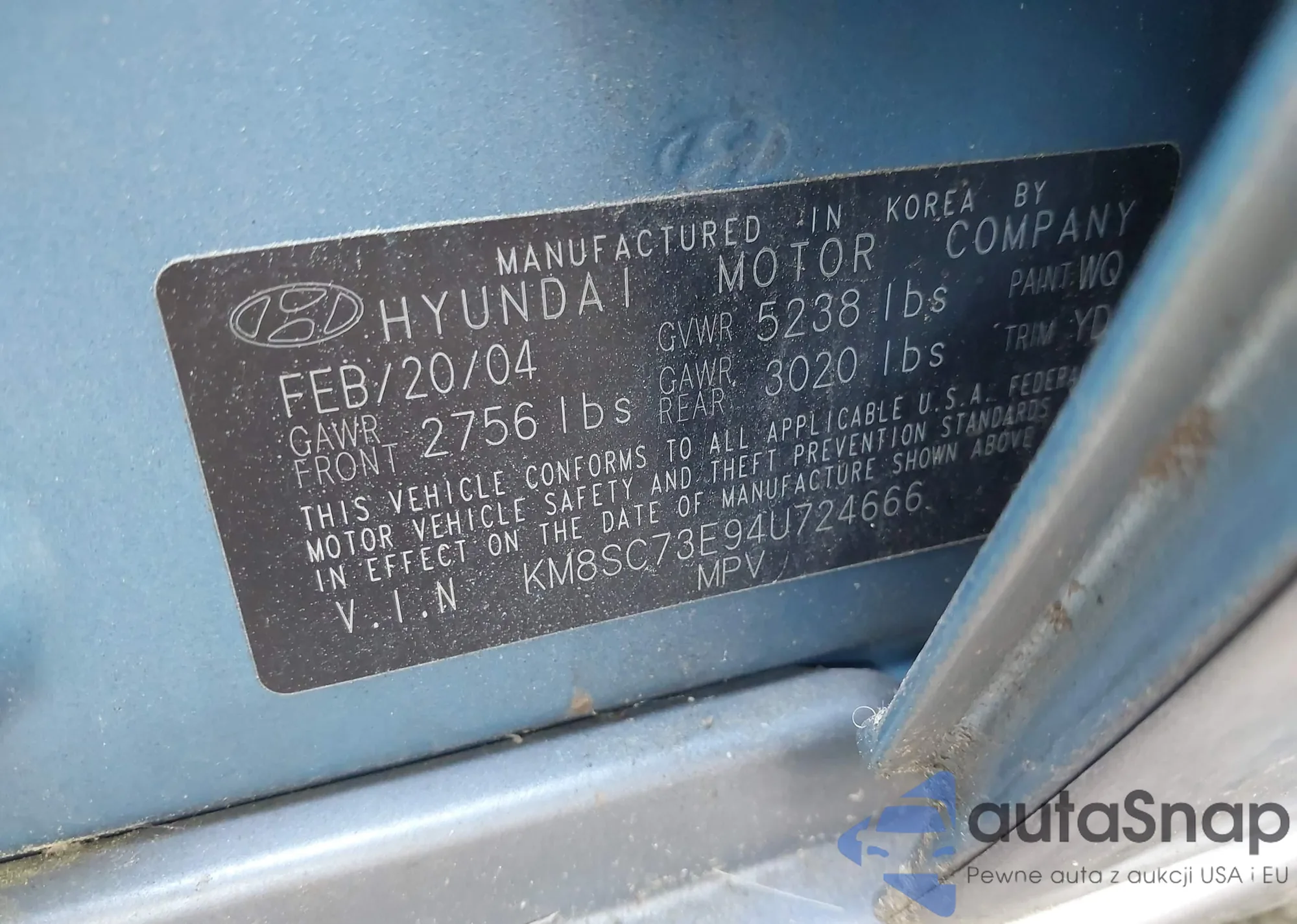 • VIN KMHDN46D16U234620