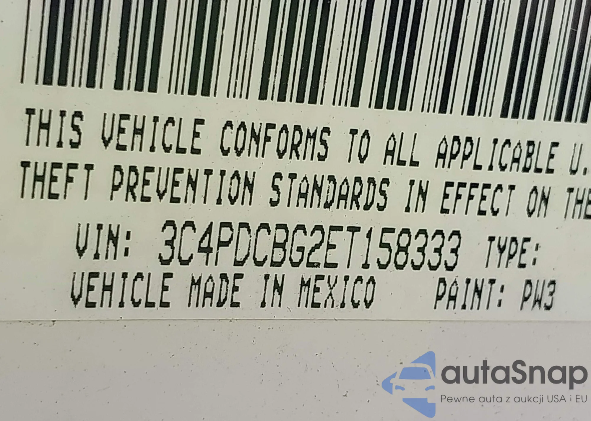 • VIN 3C4PDCBG2ET158333