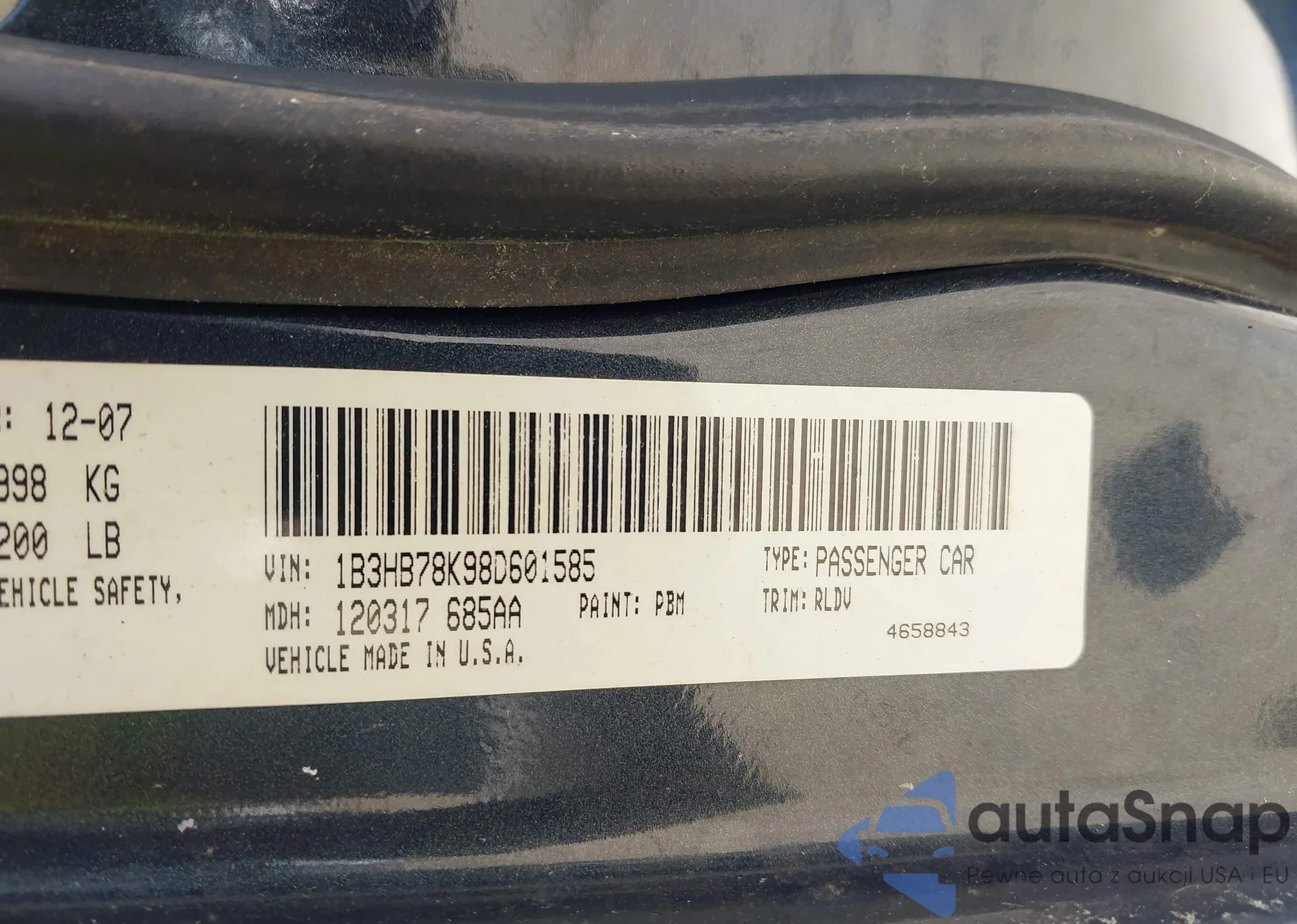 LOT: 42660679 VIN: 1B3HB78K98D601585