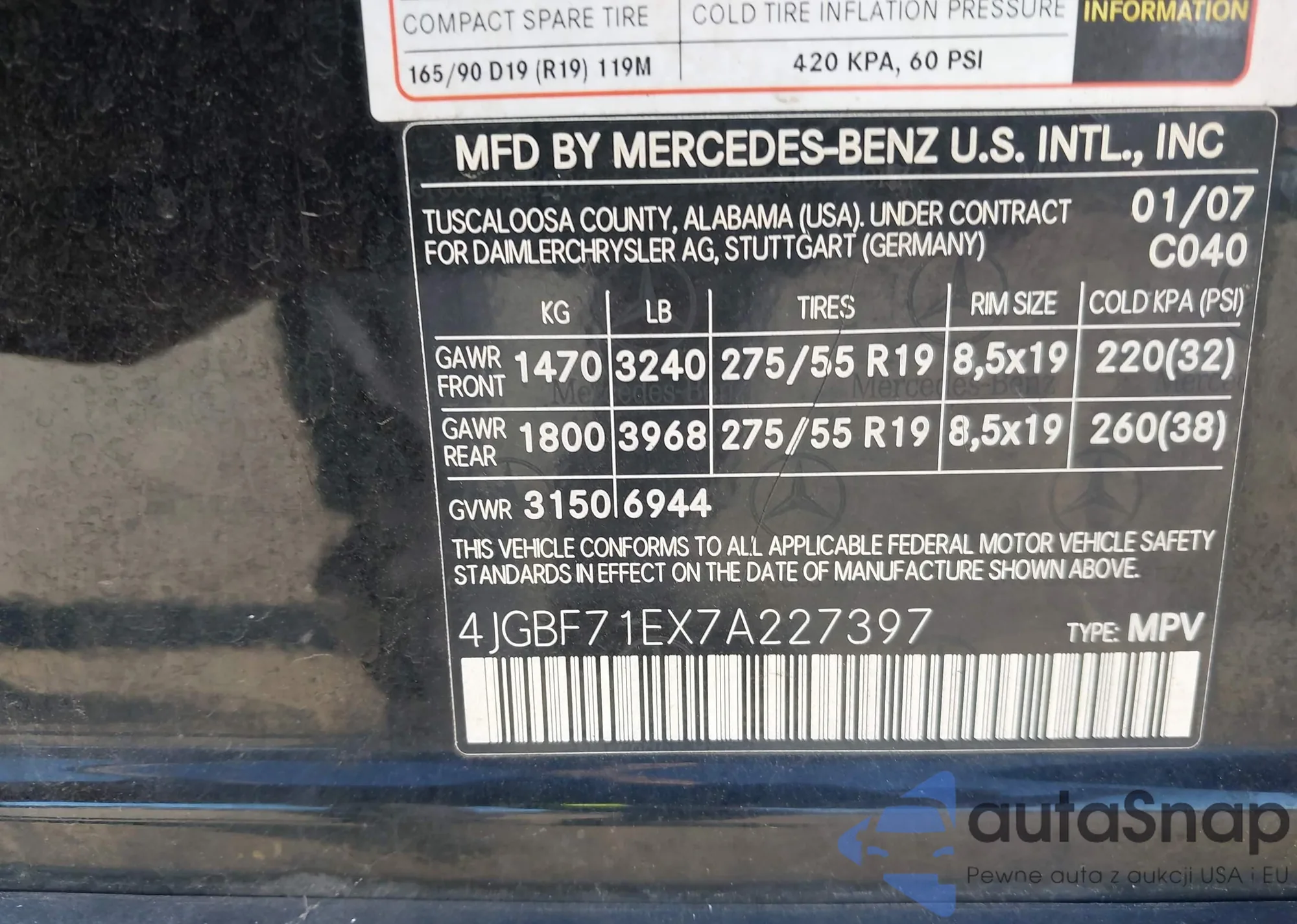LOT: 42820510 VIN: 4JGBF71EX7A227397