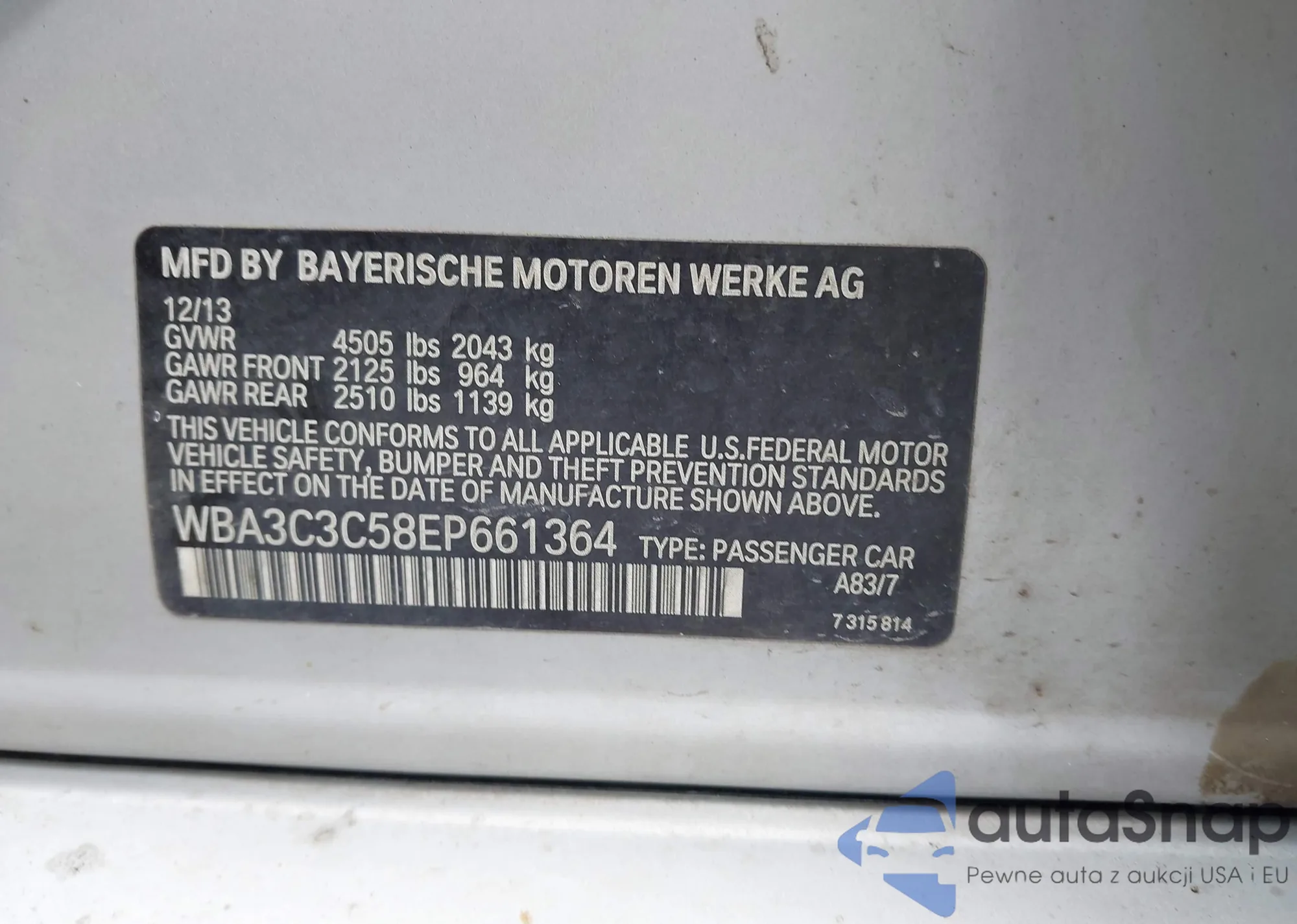 • VIN 4T1BF1FKXHU727913