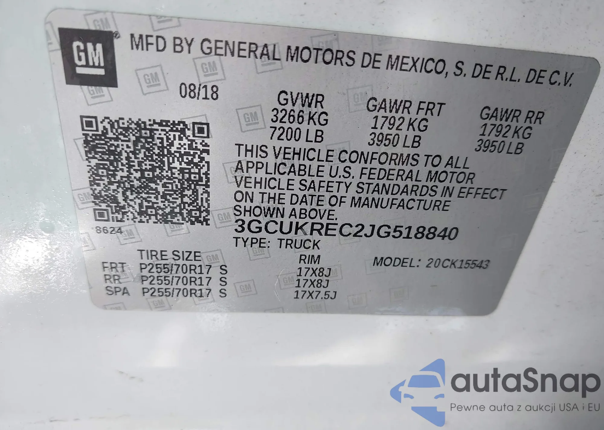 • VIN 3GCUKREC2JG518840