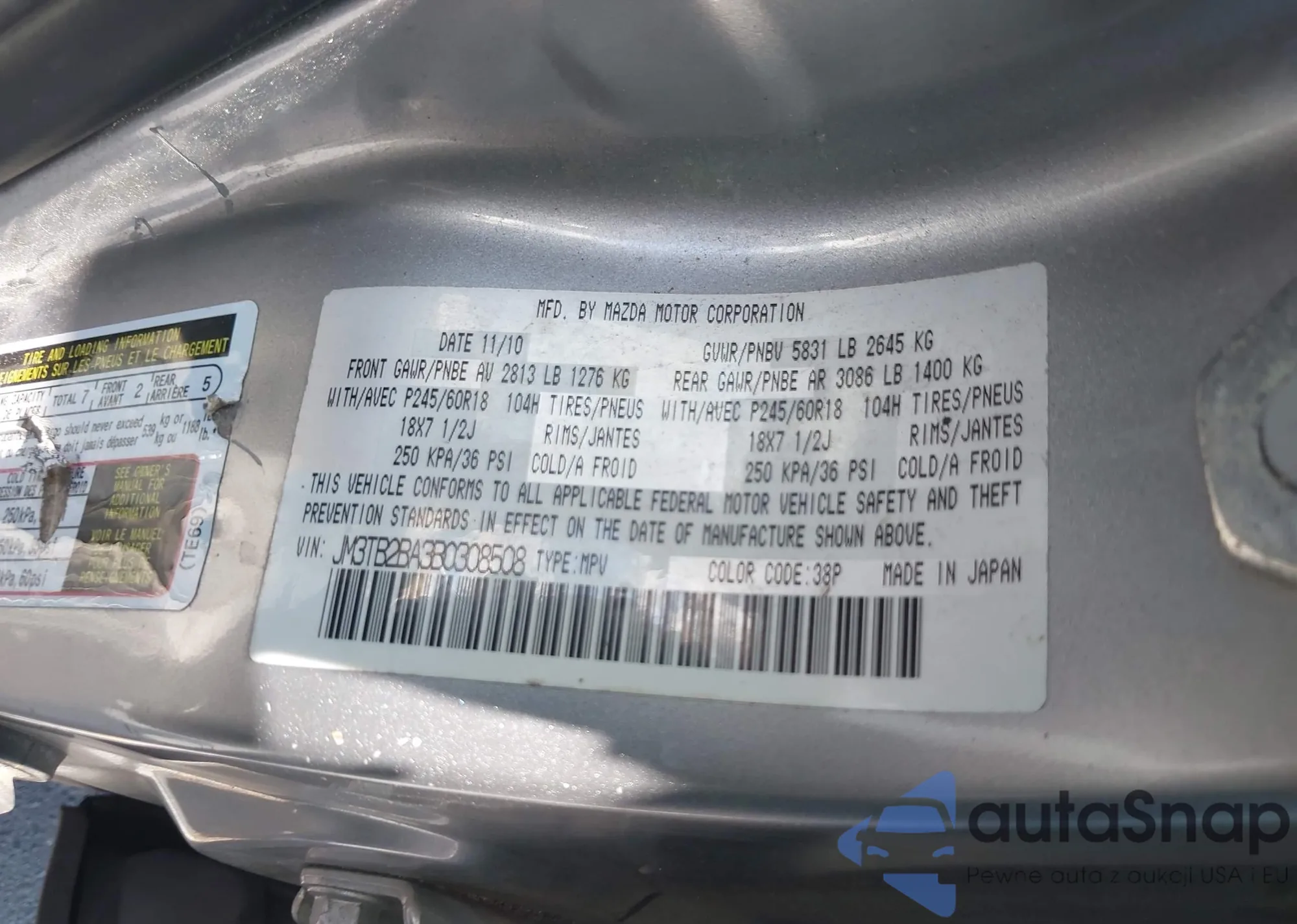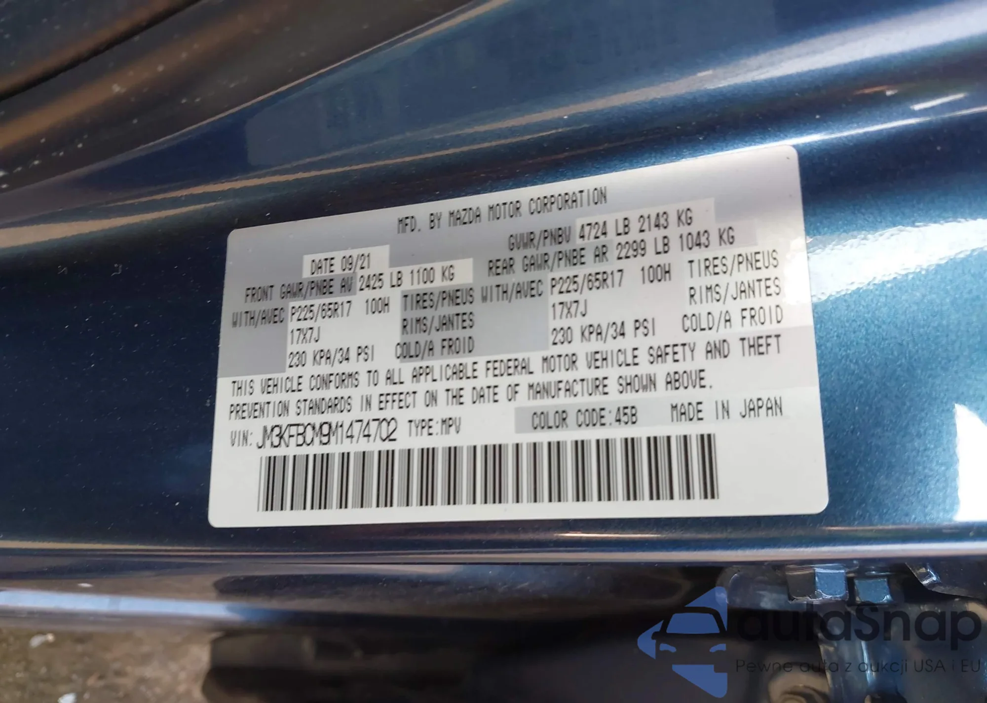 LOT: 42722546 VIN: JM3KFBCM9M1474702