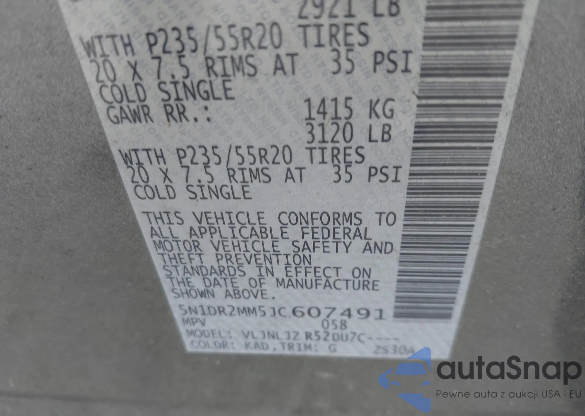 • VIN JN8AZ2NE3C9017535