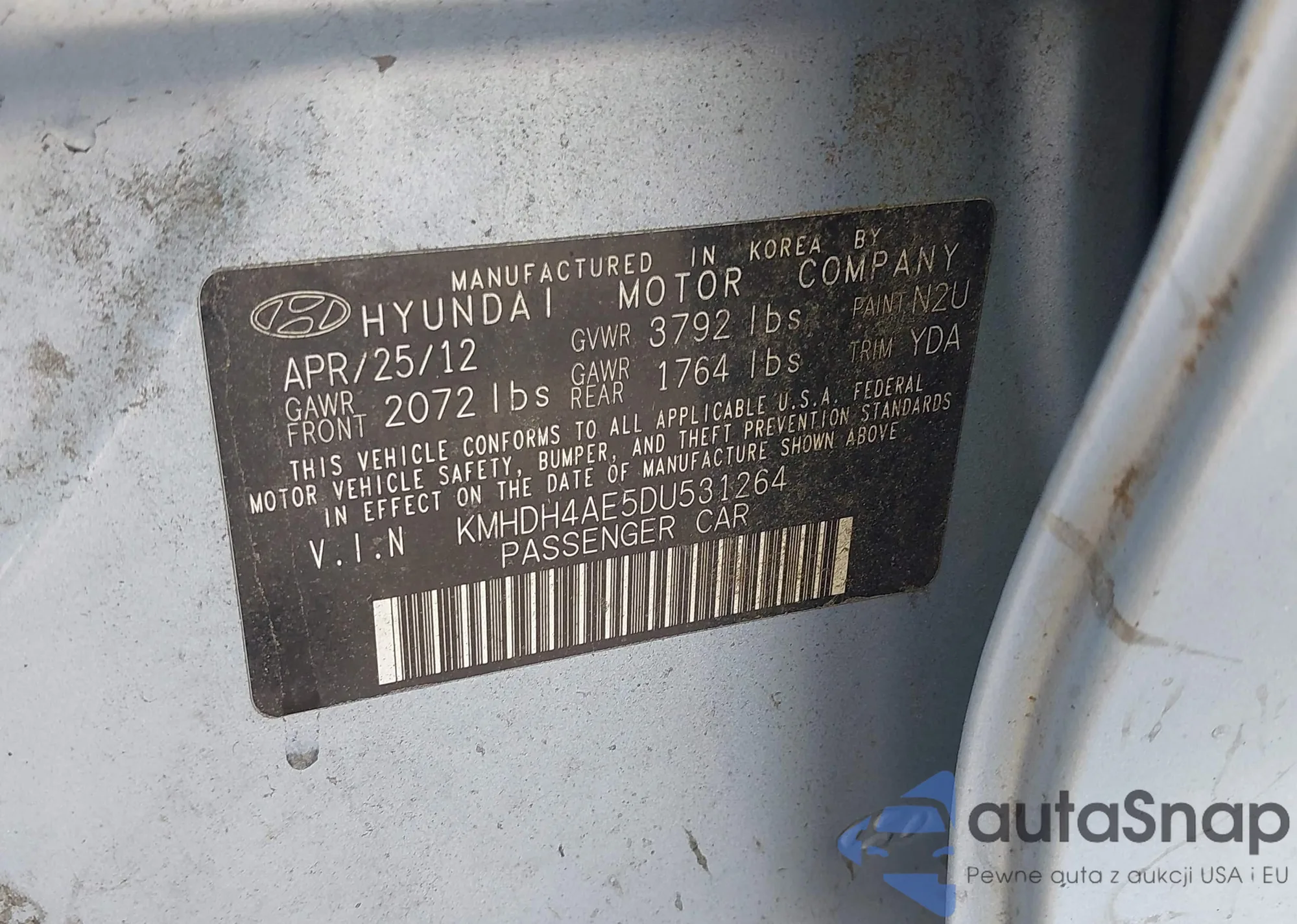 • VIN KMHDH4AE5DU531264