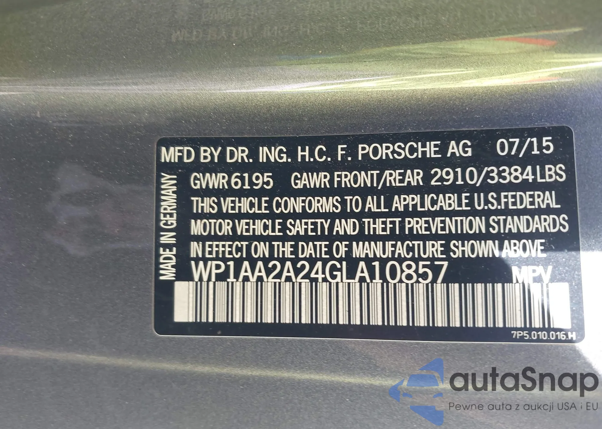 LOT: 42298297 VIN: WP1AA2A24GLA10857