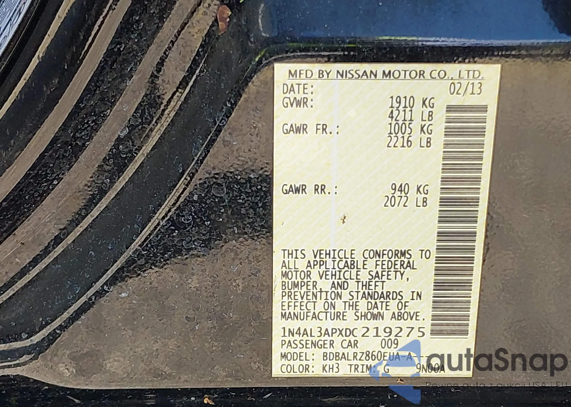 LOT: 42823891 VIN: KM8JUCAC7DU693565