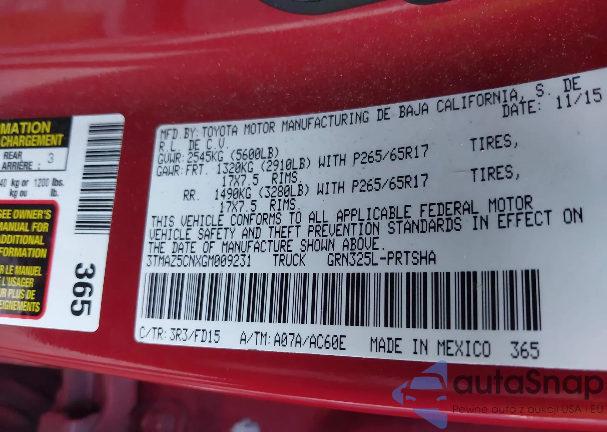 • VIN 3TMAZ5CNXGM009231