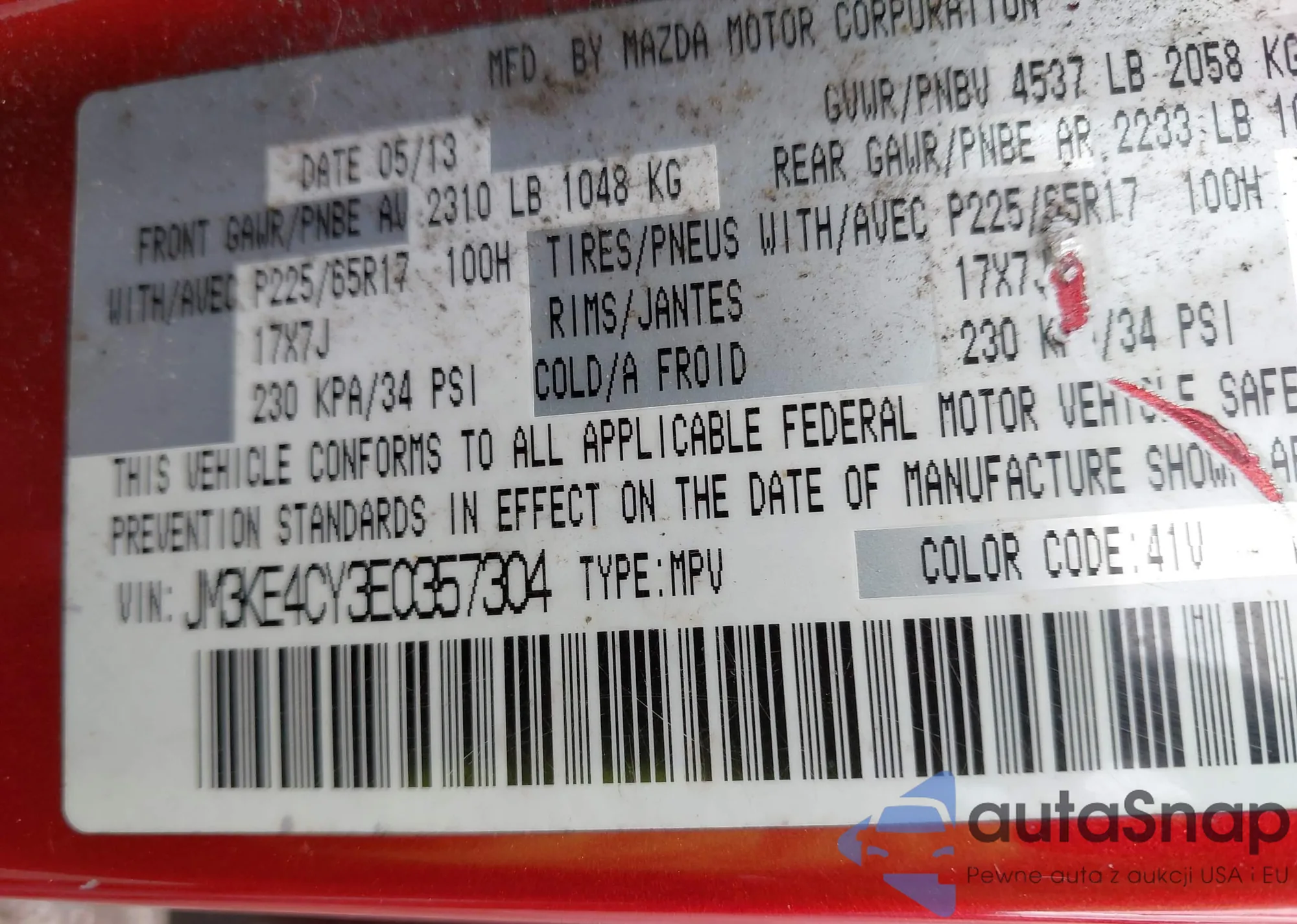 LOT: 41967450 VIN: JM3KE4CY3E0357304