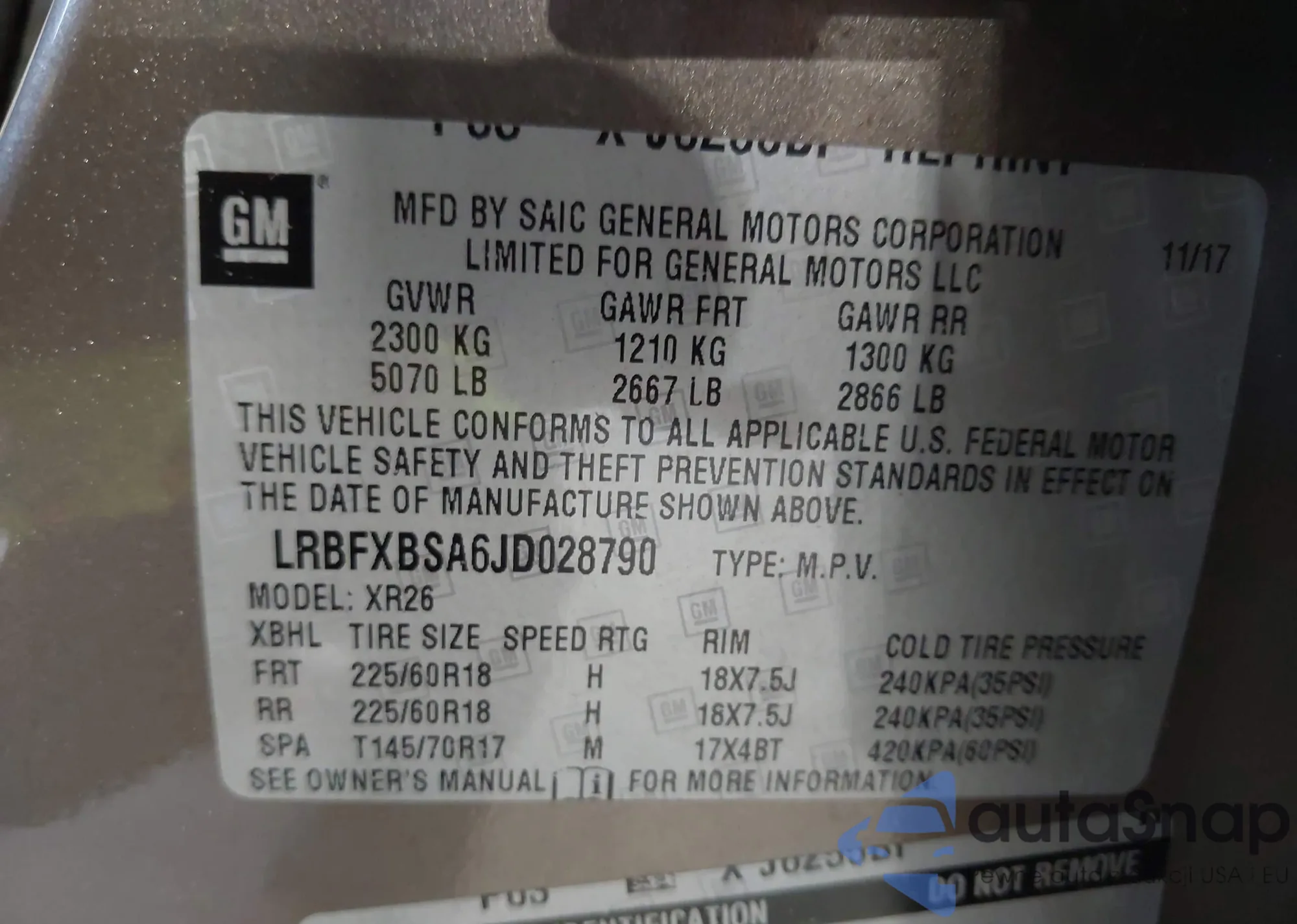 • VIN LRBFXBSA6JD028790