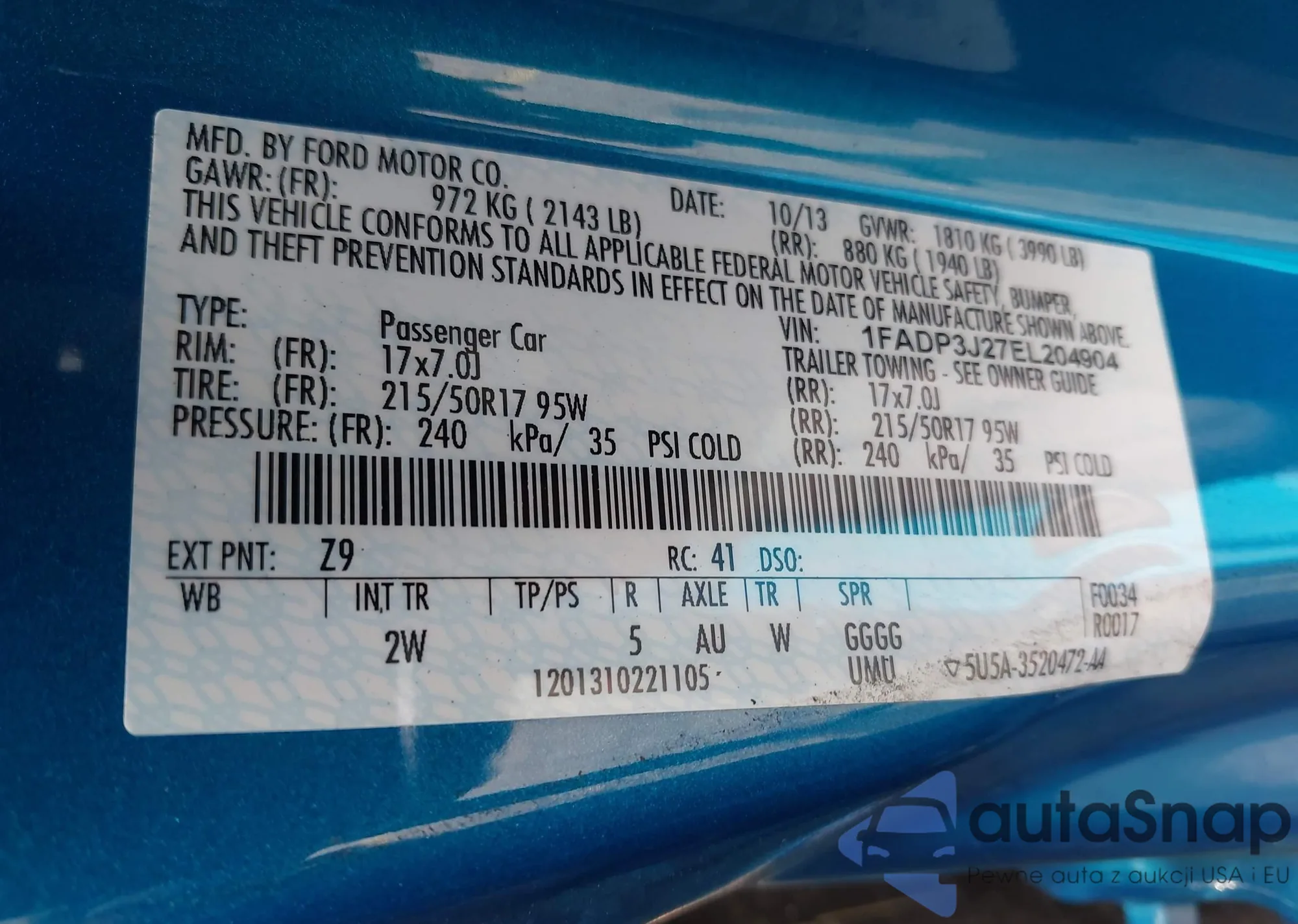 • VIN 1FADP3J27EL204904