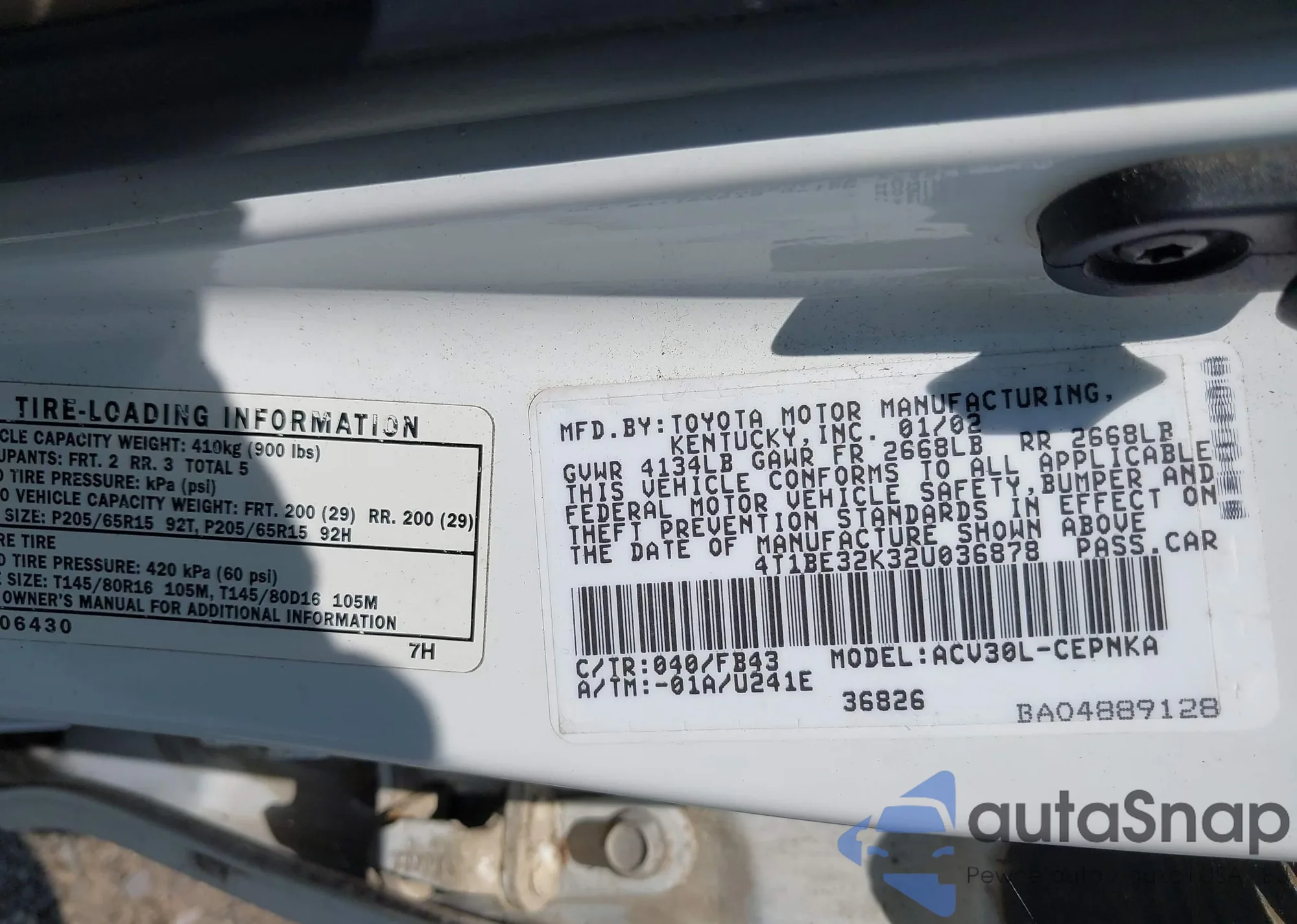 • VIN 4T1BE32K32U036878