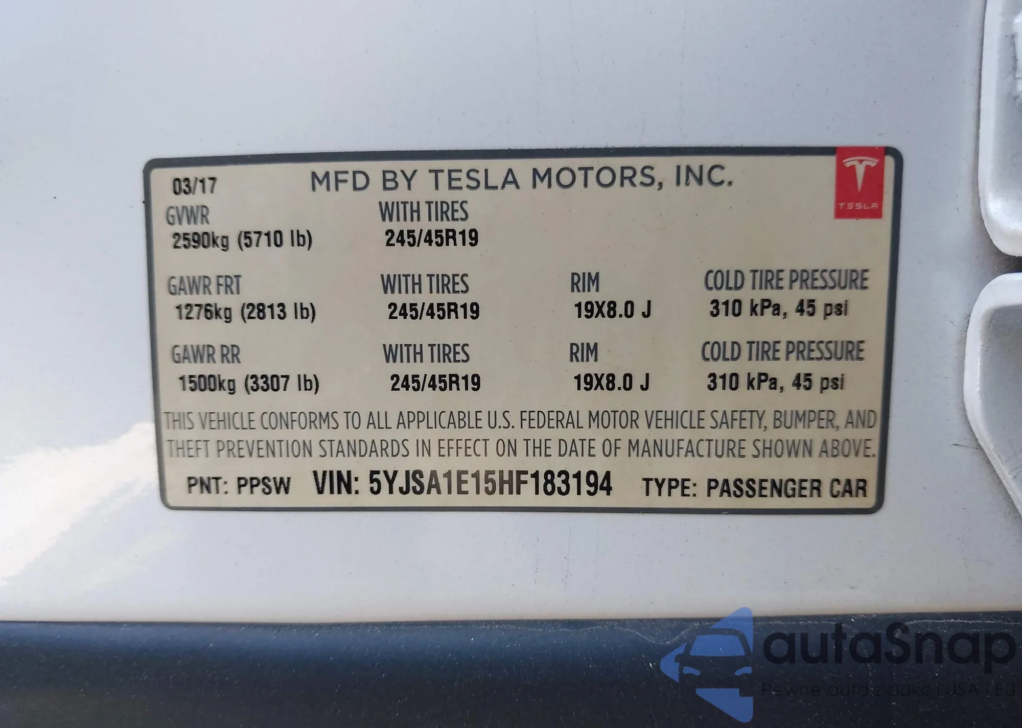 • VIN 5YJSA1E15HF183194