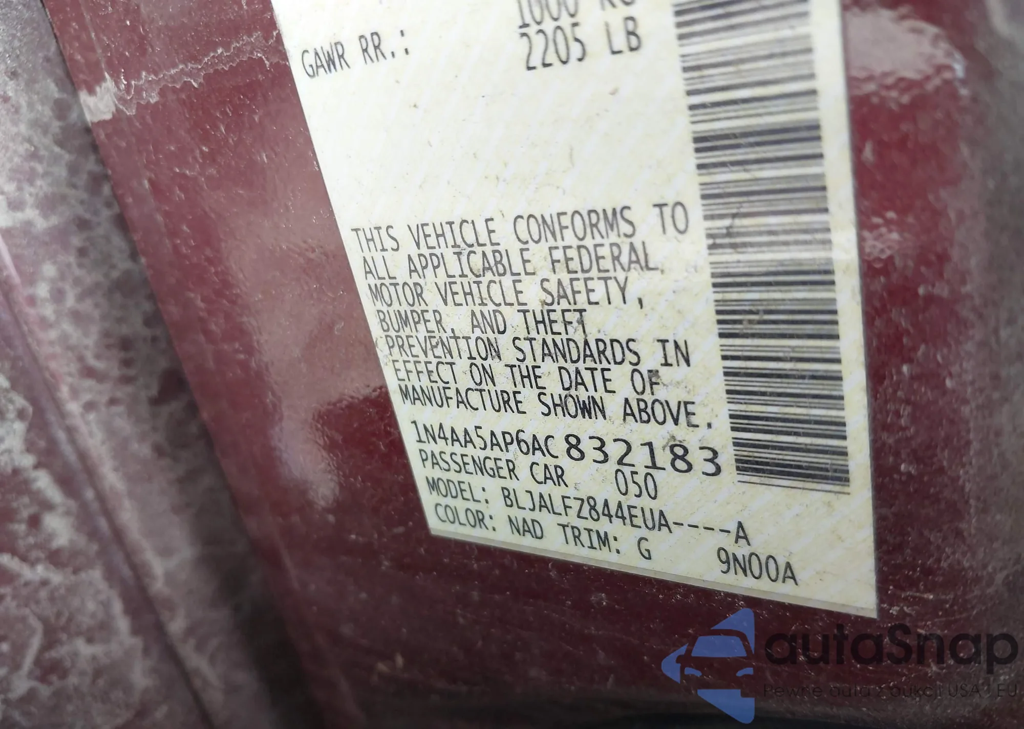 • VIN 1N4AA5AP6AC832183