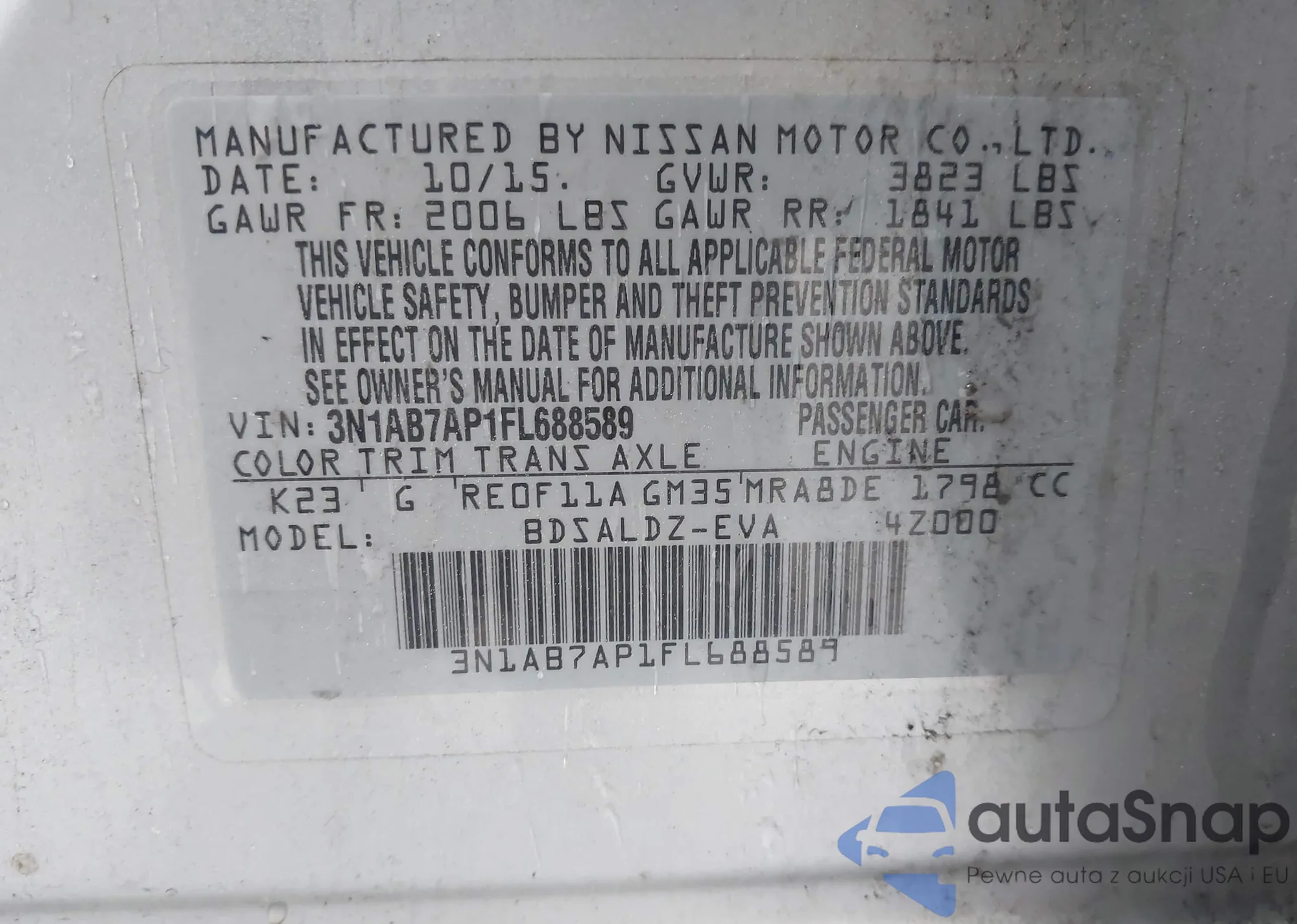 • VIN 3N1AB7AP1FL688589