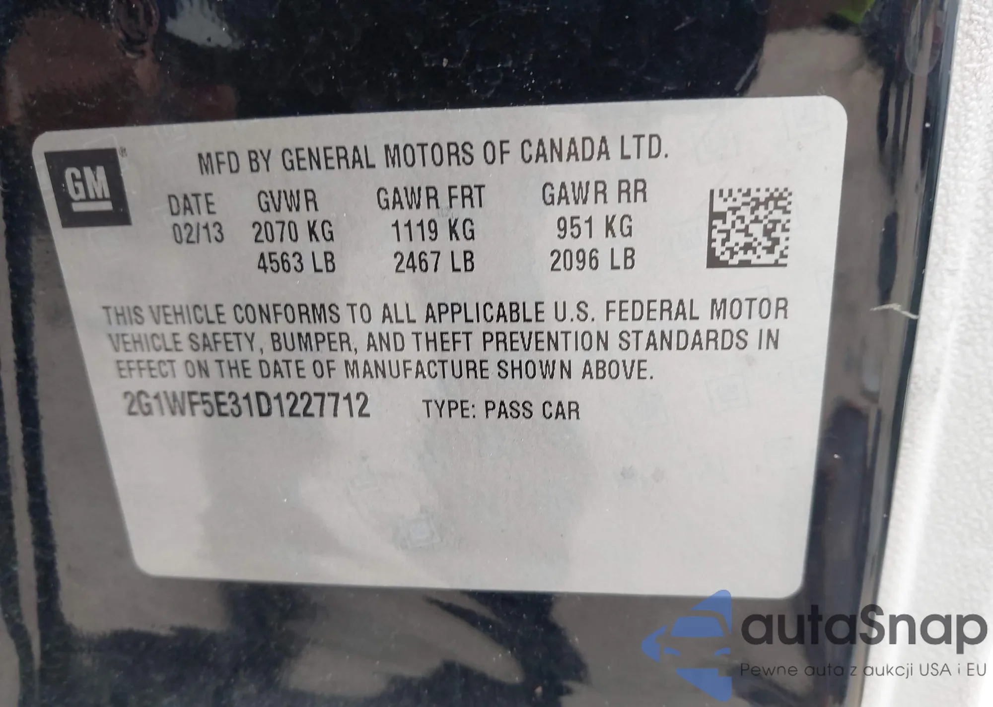 • VIN 2G1WF5E31D1227712