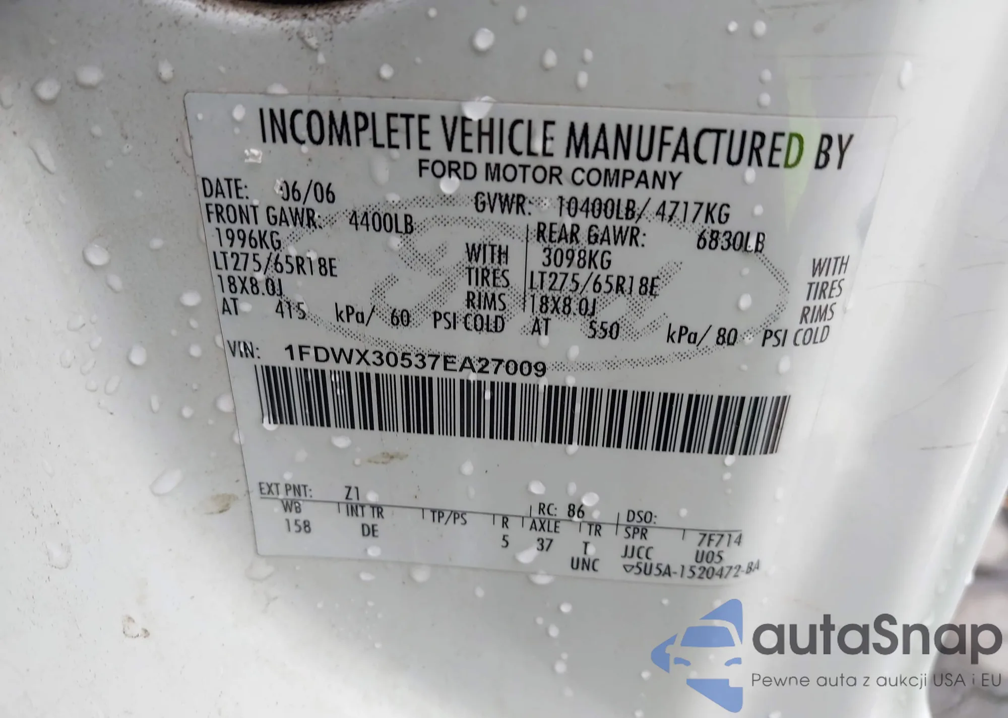 LOT: 42731300 VIN: 1FDWX30537EA27009