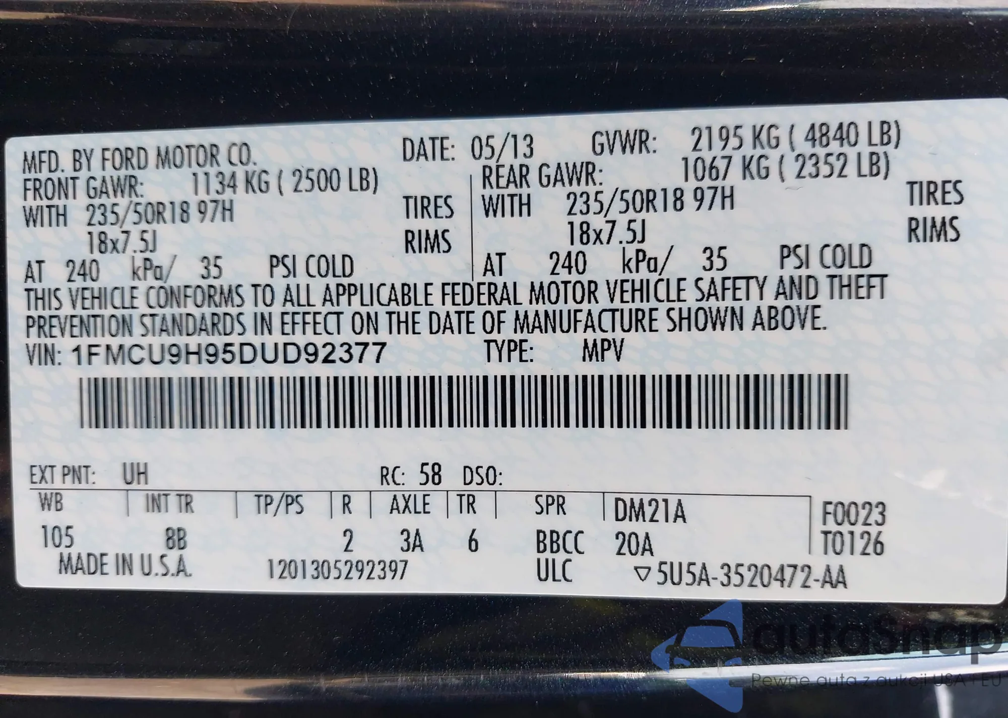 LOT: 42506761 VIN: 1FMCU9GN8PUA96630