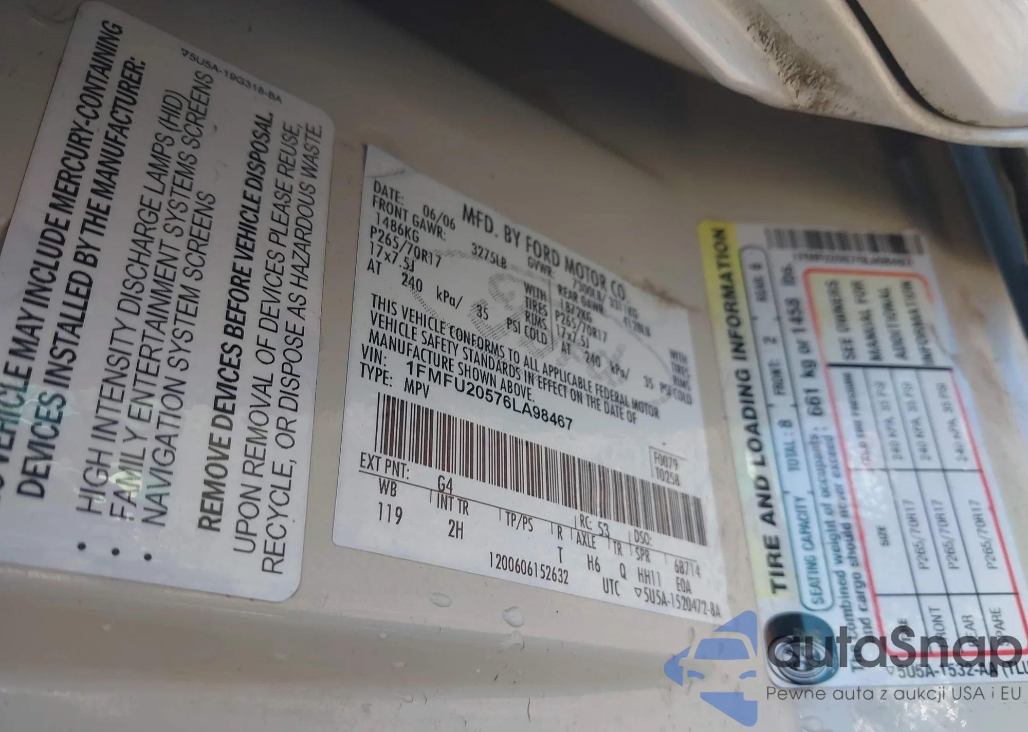 LOT: 42747334 VIN: 1FMFU20576LA98467
