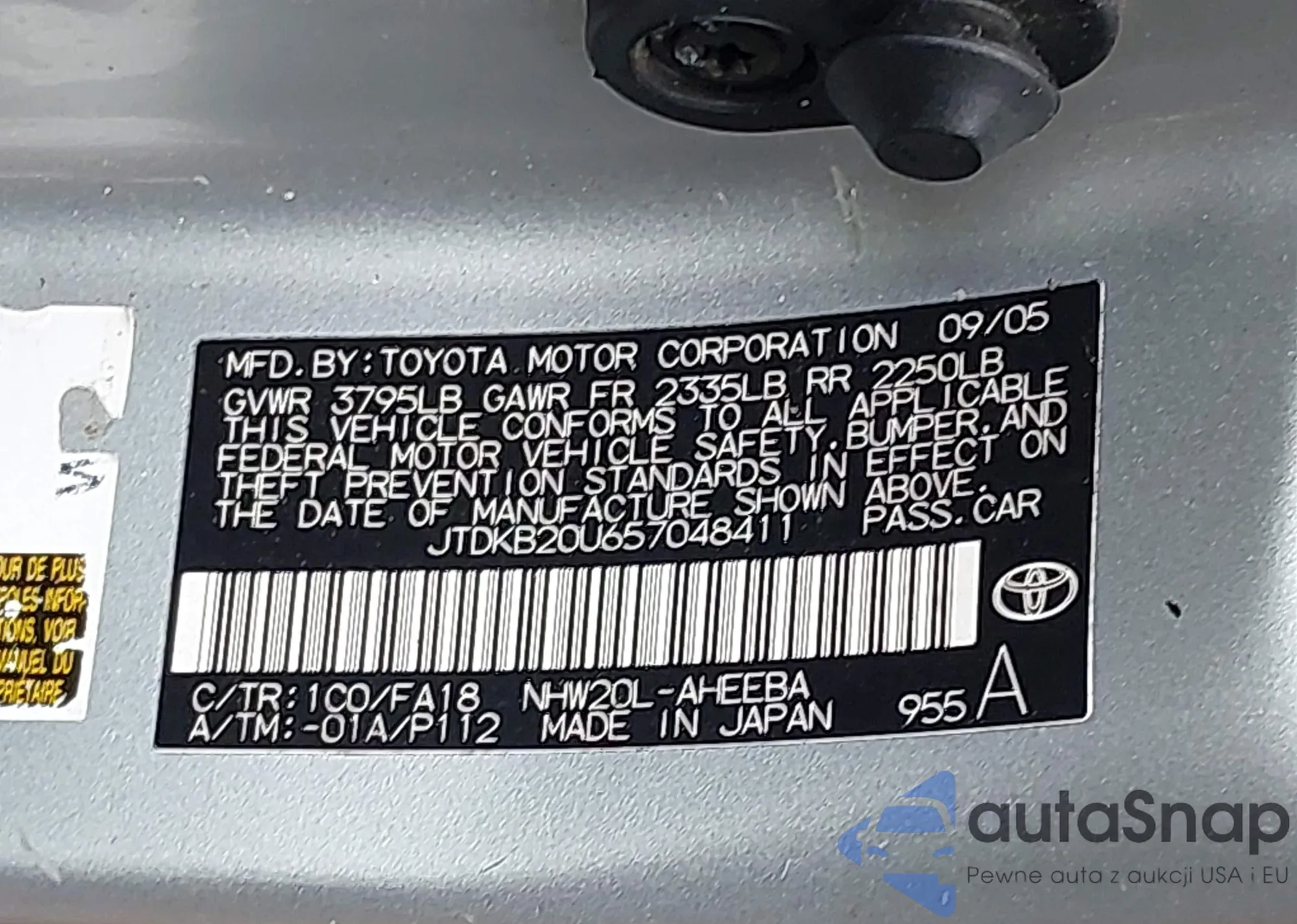 LOT: 42722167 VIN: JTDKB20U657048411