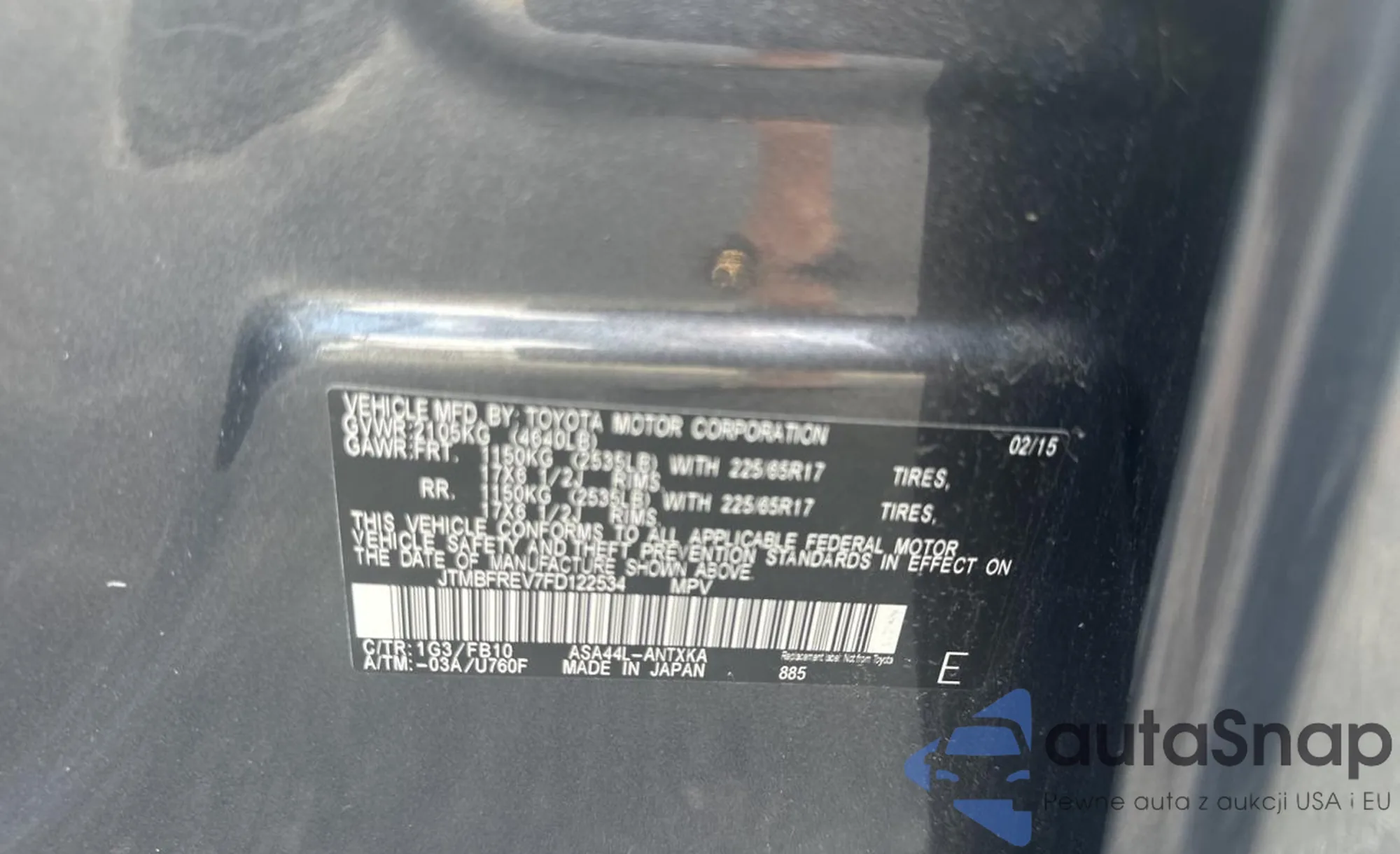 LOT: 53716885 VIN: JTEBT14RX68035259
