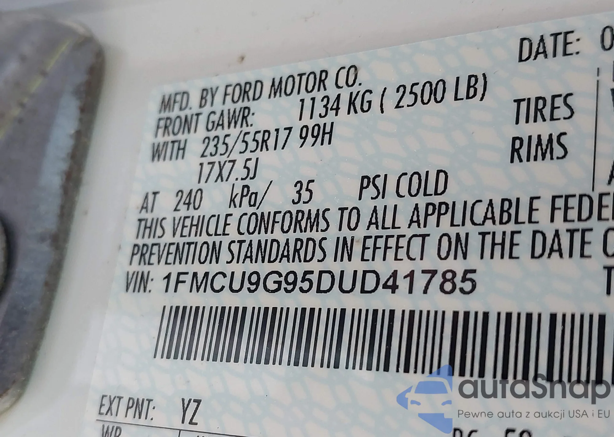 • VIN 1FMCU9G95DUD41785
