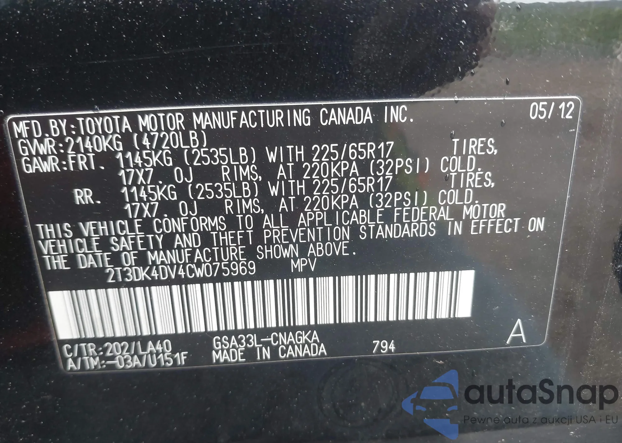 • VIN 1GKKVTED7CJ232556