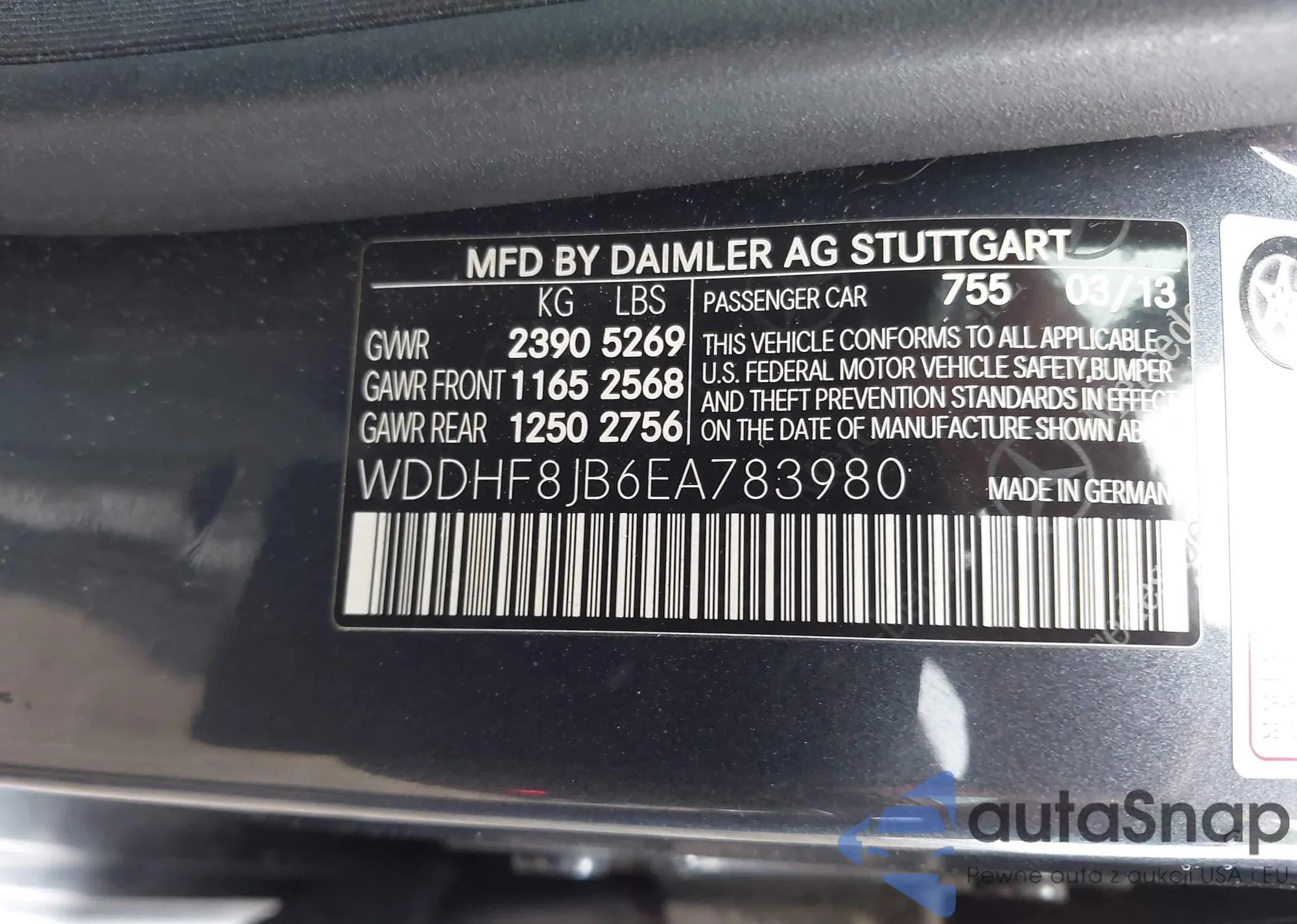 LOT: 42499915 VIN: WDDHF8JB6EA783980