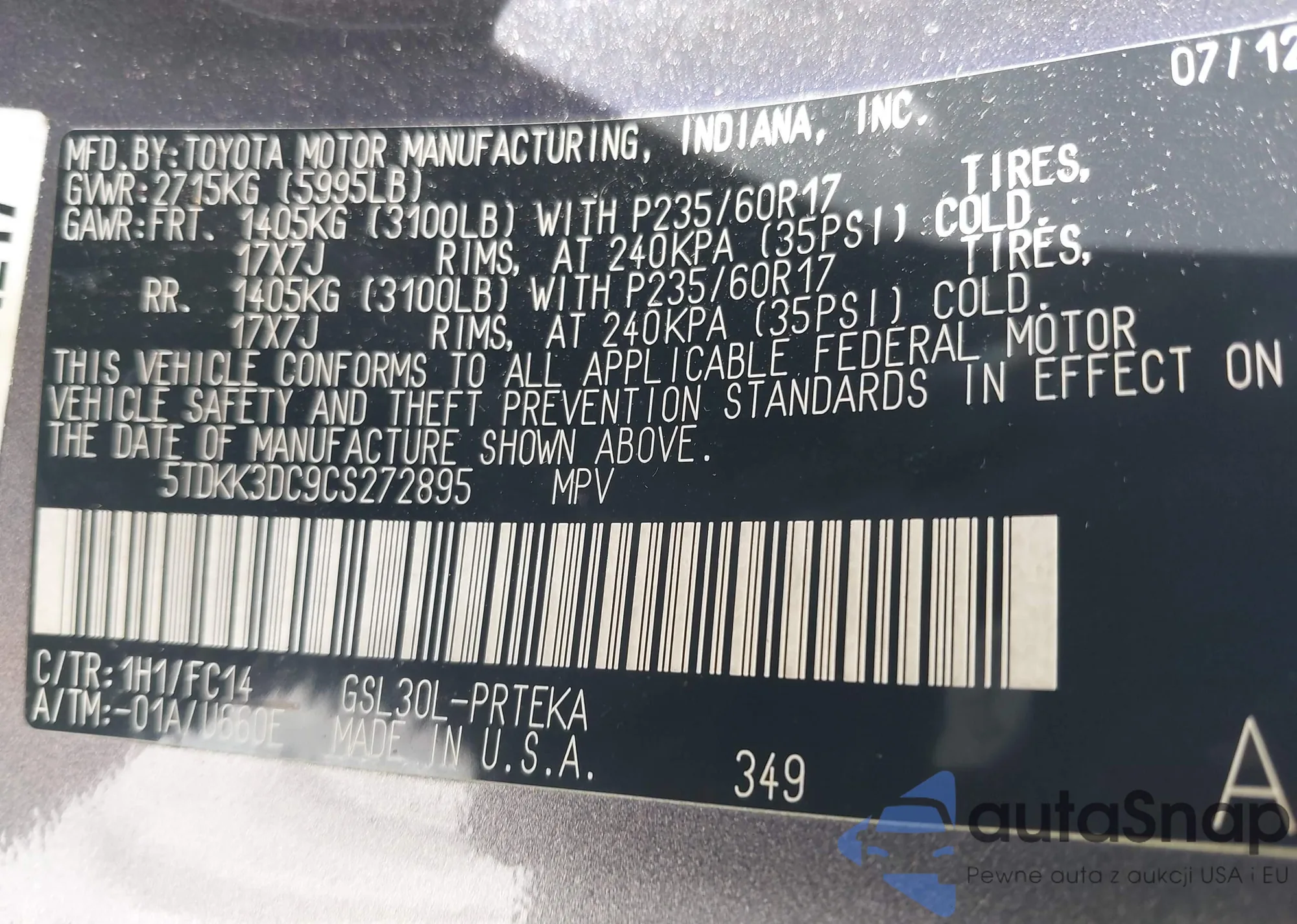 LOT: 42872036 VIN: 1GKKVTED7CJ232556
