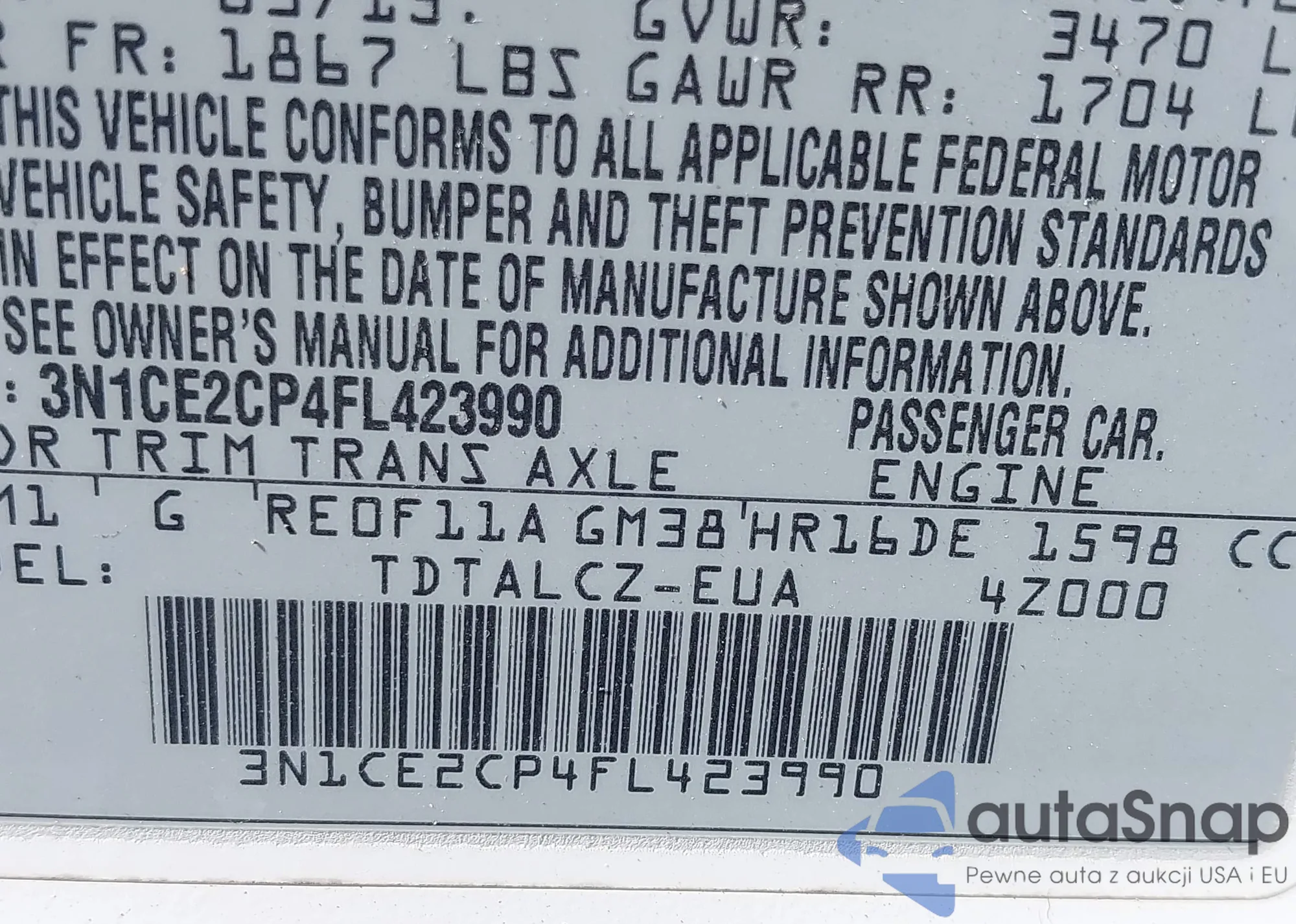 • VIN 3N1CE2CP4FL423990