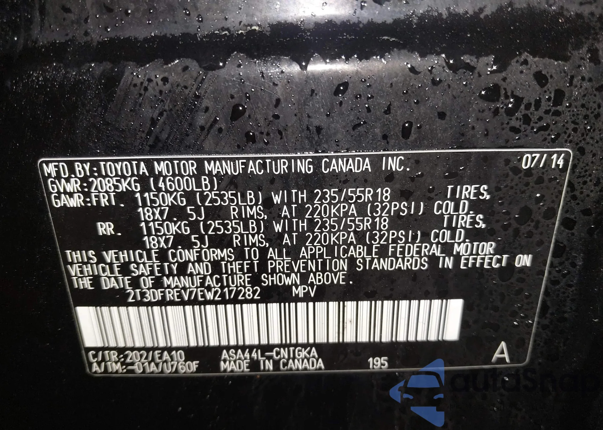 • VIN 2T3DFREV7EW217282