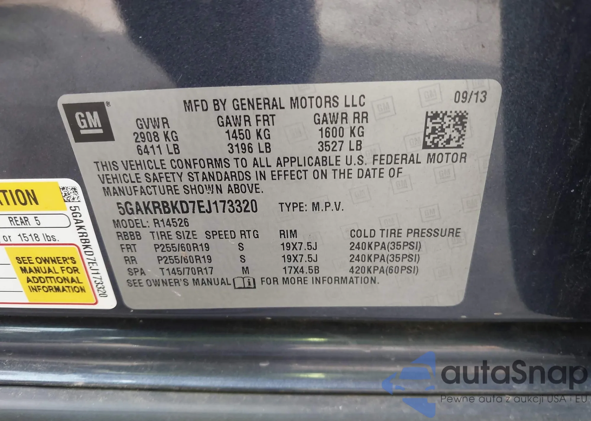 • VIN 5GAKRBKD7EJ173320