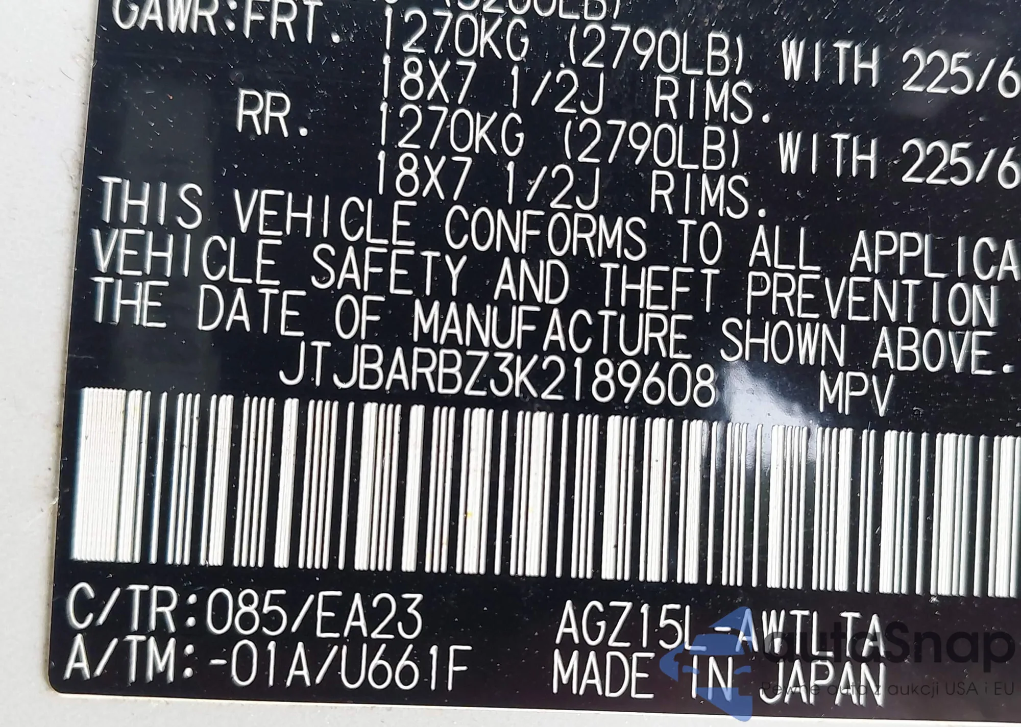 • VIN 4T1BF1FK4EU460912