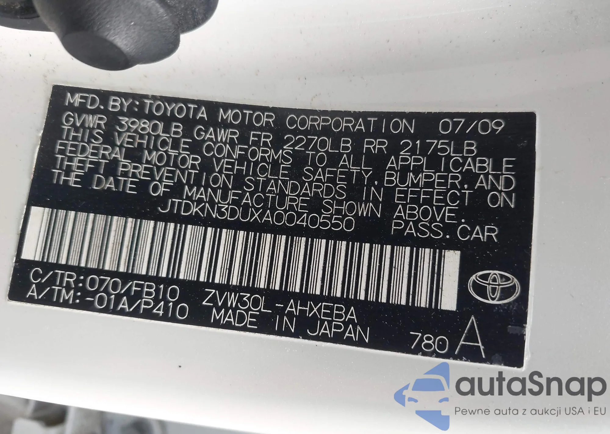 • VIN JTDKN3DUXA0040550
