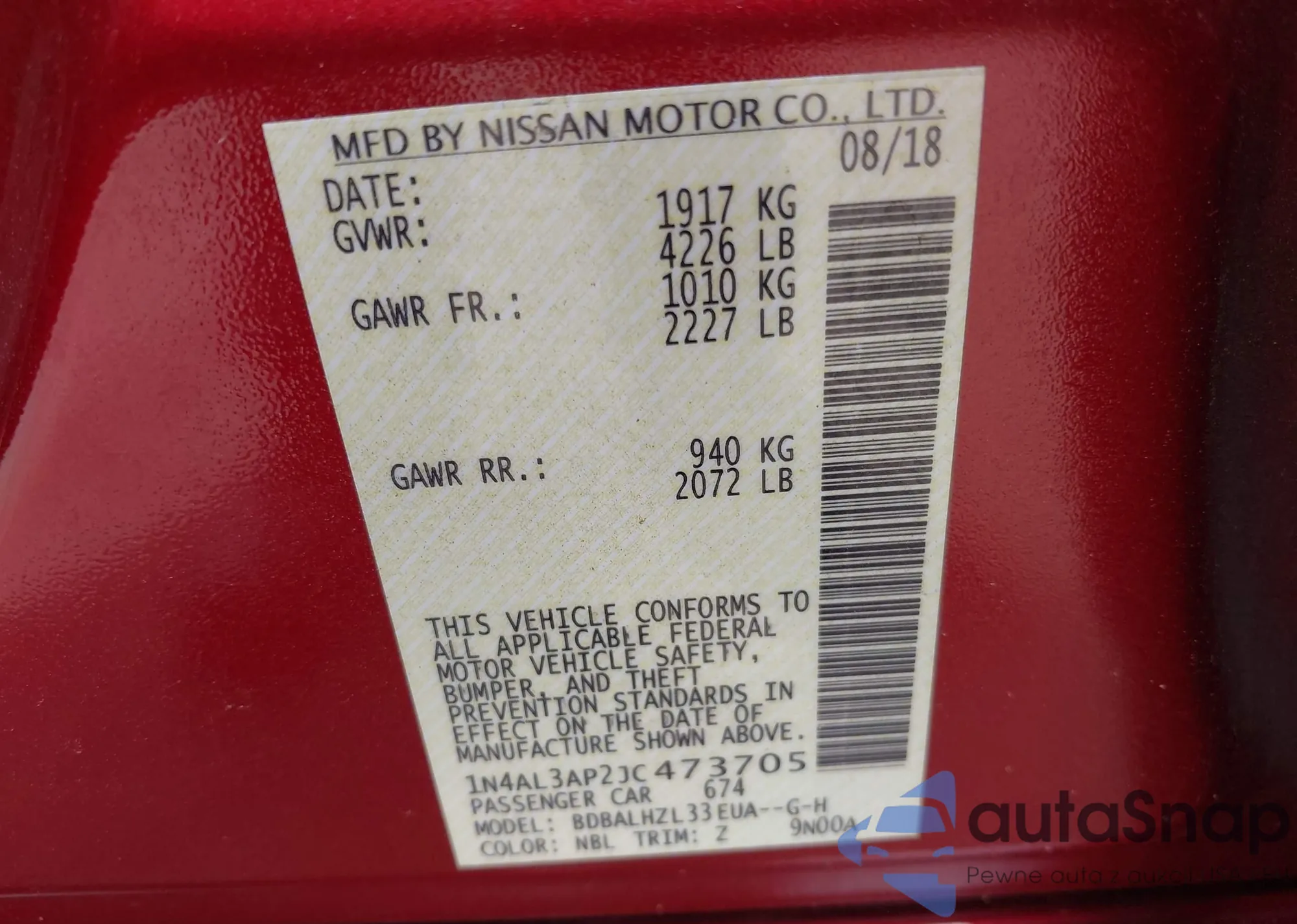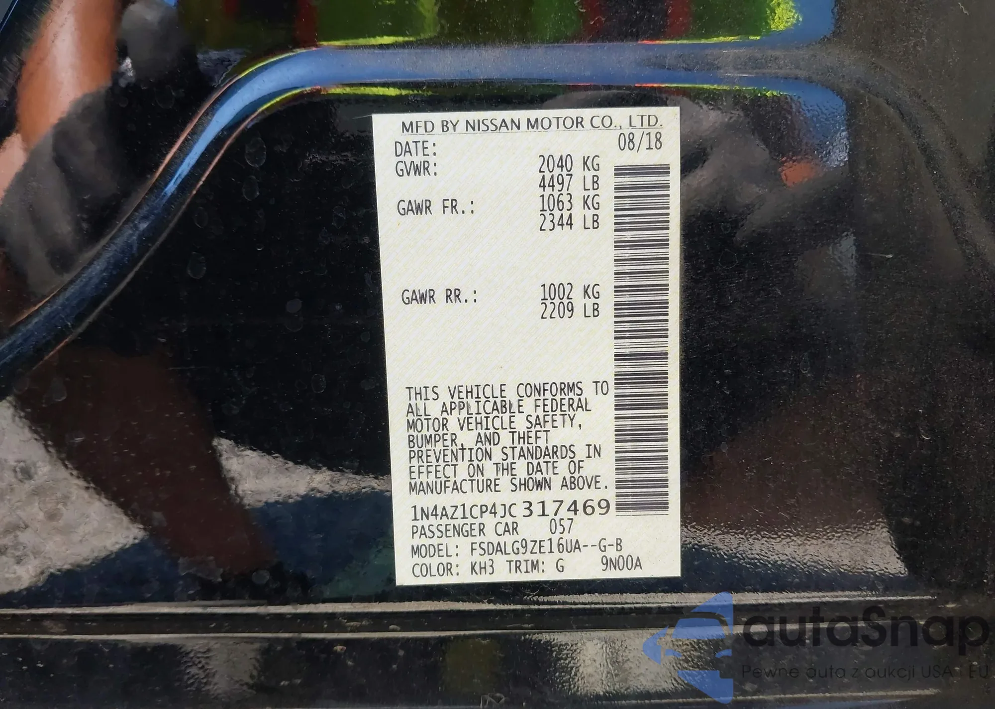 • VIN 1N4AZ1CP4JC317469